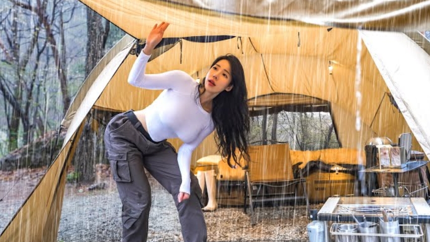 Кемпинг под сильным дождём, с новой палаткой.