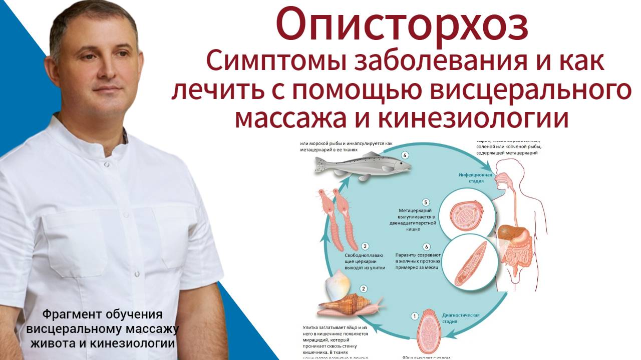 Подробно в видео Описторхоз – это паразиты, которые часто заводятся в печени, глисты, плоские черви. Заражение ими происходит в основном от пресноводной рыбы, в рыбе происходит промежуточный этап их развития, выглядят они в виде яиц, заметить их очень трудно, потому что, как правило они находятся в жабрах и мясе. Описторхи отличаются от других паразитов тем, что они питаются нашей плотью, а конкретно они поедают ткани печени, слизистые протоков желчного пузыря, травмируют желчный пузырь. При хроническом описторхозе у человека может быть небольшое повышение температуры, головная боль височной локализации, нарушения сна, депрессия, гнев и раздражение, расстройства пищеварения и так далее. Смотрите подробно в видео про описторхоз, как проявляется, симптомы и как лечить ✅ ЗАРЕГИСТРИРОВАТЬСЯ НА КУРСЫ ОБУЧЕНИЯ ПРИКЛАДНОЙ КИНЕЗИОЛОГИИ И МАССАЖУ ВНУТРЕННИХ ОРГАНОВ (ЖИВОТА) СЕЙЧАС ПО ССЫЛКЕ https://ruszdrava.ru ✅ Связаться с администратором курсов и задать вопросы: +79222160707 ✅Познакомьтесь с кинезиологией и массажем живота бесплатно! Узнать больше про работу с внутренними органами Вы сможете на вебинаре! https://ruszdrava.ru/ Лечение правильным висцеральным массажем живота и кинезиологией, медовым, антицеллюлитным массажем живота и боков и вакуумными банками в Екатеринбурге для похудения, при остеохондрозе, запоре, простатите, проблемах желчного пузыря и многих других недугах. На сеансе Вы можете получить уроки обучения методу “Висцеральный массаж живота руками” как по Огулову А.Т. , так и по методикам других экспертов висцерального массажа живота - для обучения самостоятельно с нуля. Предоставляем в регионе услуги висцерального массажа живота с 2005 года, 14 лет официальной работы как представительства Академии висцерального массажа живота проф. Огулова А.Т. : услуги и обучение. Не откладывайте “на потом”, становитесь здоровым сейчас ! Записывайтесь на консультацию в Екатеринбурге +79222095238. Сайт о наших услугах http://prozdorovie.pro ✅ Присоединиться к чату живого общения по оздоровлению в Телеграм: https://t.me/VisceralHealth ✅ Присоединиться в инстаграм: https://www.instagram.com/vladimir_seryodkin_prozdorovie/ ✅ Больше информации www.prozdorovie.pro ✅ Присоединяйтесь к нашей группе в ВК: https://vk.com/prozdorovie_pro ✅ Присоединяйтесь к нашему ютуб каналу: https://www.youtube.com/channel/UCYejUQ6KfkvOOyBm14uJVkw