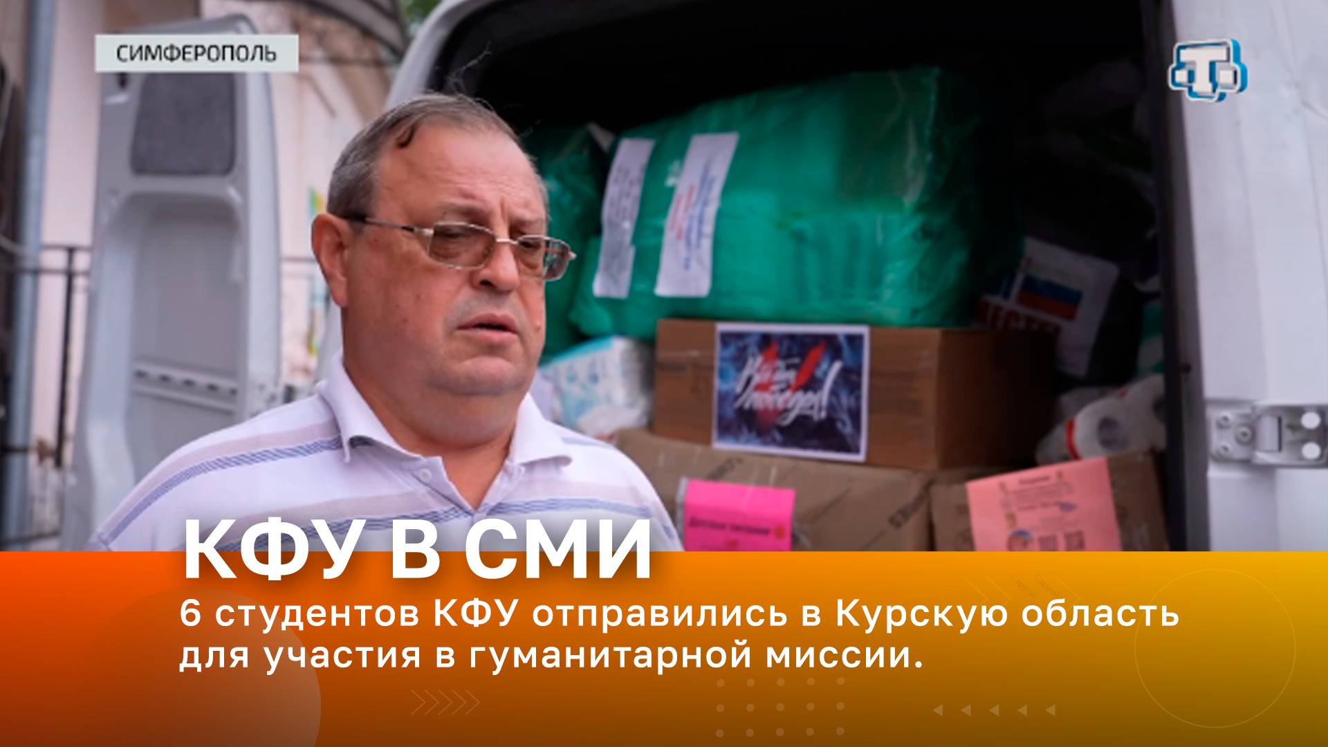 Телеканал «Миллет». В эфире – студентка КФУ им. В.И. Вернадского Софья Клименкова, проректор по международной деятельности и информационной политике КФУ им. В.И. Вернадского Сергей Юрченко Тема эфира – Шесть студентов Крымского федерального университета отправились в Курскую область для участия в гуманитарной миссии. Добро не знает границ. В этом точно убеждены волонтёры Народного фронта Крыма. Шесть студентов Крымского федерального университета отправились в Курскую область для участия в гуманитарной миссии. В течение двух недель они будут работать в пунктах временного размещения населения, сортировать и доставлять гуманитарный груз. Кроме того, для детей и взрослых, в одночасье вырванных из привычной жизни, неравнодушные крымчане передали посылки.