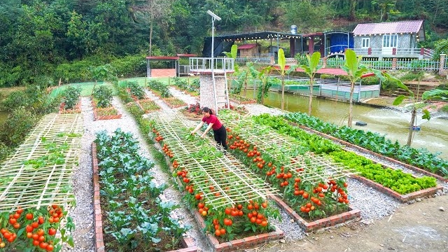 Собираю урожай зеленых листовых овощей. Делаю решетку для помидоров. Серия 63. Ли Фук Ви