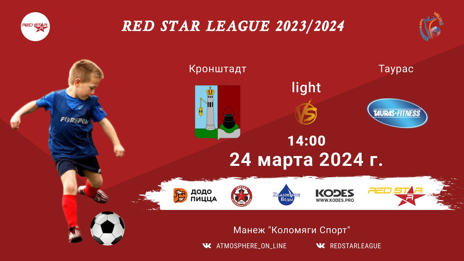 Red Star League среди команд 2012 г.р. (U12), дивизион "LIGHT" 24 МАРТА 2024 САНКТ-ПЕТЕРБУРГ, Манеж "Коломяги-Спорт" ФК "Кронштадт" - ФК "Таурас"/Red Star League, 24-03-2024 14:00
