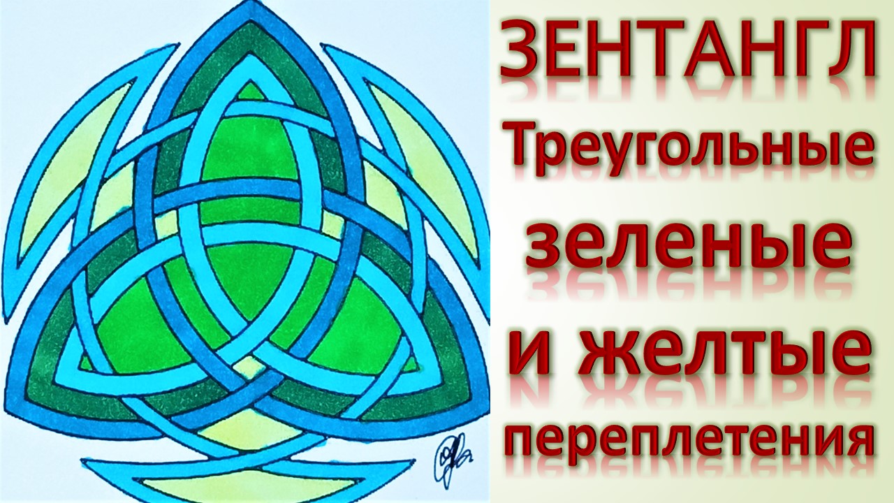 Зентангл Треугольные зеленые и желтые переплетения