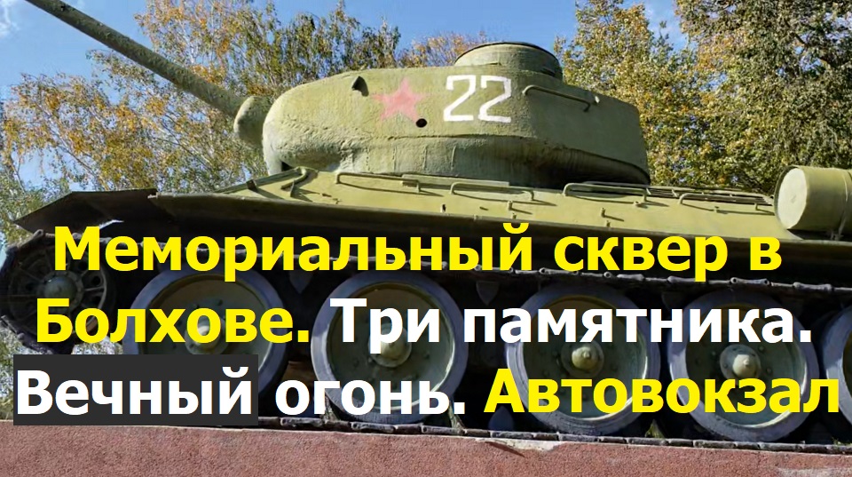 230924 Танк Т-34 Мемориальный сквер Вечный огонь памятник ВОВ локальных войн город Болхов автовокзал