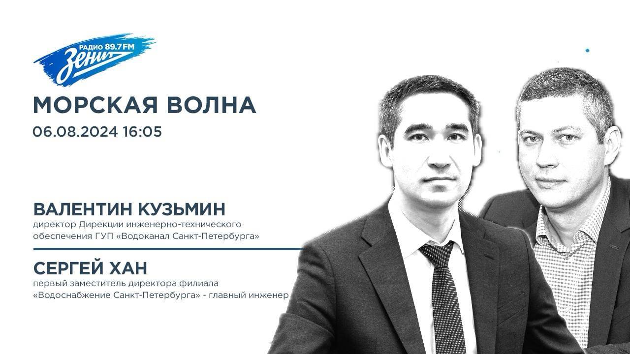 «Морская волна»: в студии директор Дирекции инженерно-технического обеспечения ГУП «Водоканал Санкт-Петербурга» Валентин Кузьмин и первый заместитель директора филиала «Водоснабжение Санкт-Петербурга» — главный инженер Сергей Хан.