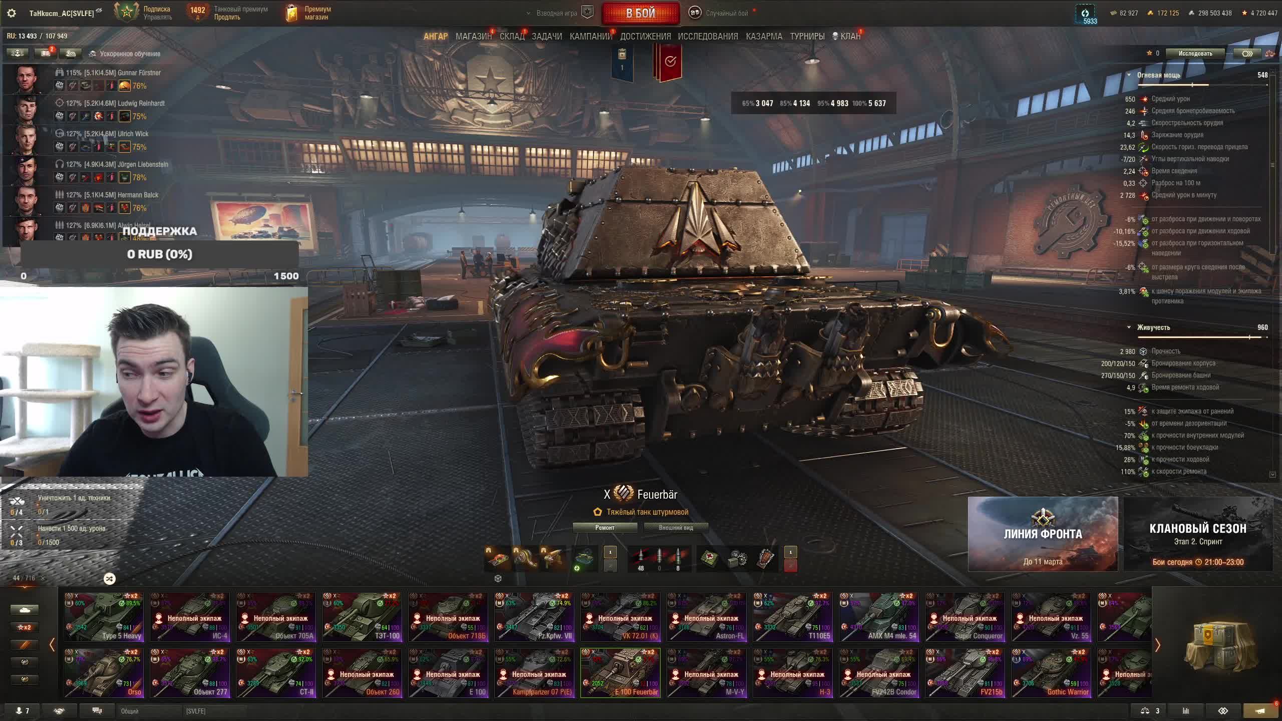 Поддержать стримера http://www.donationalerts.ru/r/tahkucm_ac Сбер без комиссии 2202 2062 2408 9735 напишите в чате, чтобы проверил Telegram https://t.me/TaHkucm_AC Канал VK Play Live https://vkplay.live/tahkucm Канал Бусти https://boosty.to/tahkucm Канал на трово https://trovo.live/TaHkucm_AC Канал Яндекс Дзен https://dzen.ru/id/62355e95d406852937d33526 Группа Вконтакте https://vk.com/tahkucm_ac Оборудование и модернизации на все танки https://docs.google.com/spreadsheets/d/16koQOrtKQKQrAy2Pgfm6GBeG8bA1tJP_7Vm78knwUXA/edit#gid=422106233 Настройки игры в скринах https://dzen.ru/a/YmFvHhJ9yi3rZO5M Моды со скринами установки https://vk.com/topic-136212047_47639792 По поводу рекламы писать в личку https://vk.com/v_xarlamow Всем привет! Меня зовут Виктор, мой ник TaHkucm_AC. На моем канале стрим мира танков каждый день с 8 или 9 по мск. Так же иногда стримлю вечером в произвольное время, чтобы не пропустить подпишитесь на оповещения в телеге или вк (ссылки выше). Играю в танки с декабря 2011 года, а стримить начал в начале 2017 года. Во время стримов общаюсь с чатом, помогаю советами по игре, объясняю тактику. Средняя статистика 65% побед и 4-5к вн8. Фан кланы SLPFR - Командиры marmyn и artlay - из требований только то, чтобы вы часто играли в танки. Укреп 10 уровня. Участвуют в ивентах на ГК, как минимум чтобы собрать пропуск на аукцион. L-DS - Командир DarkSpawn13. Укреп 10 уровня, плюхи по кд SVLFE - Командир Shadowlions. Требуется Team Speak (программа связи) для взводов и клановых покатушек. Участвуют в ивентах на ГК, как минимум чтобы собрать пропуск на аукцион. укреп 10 уровня