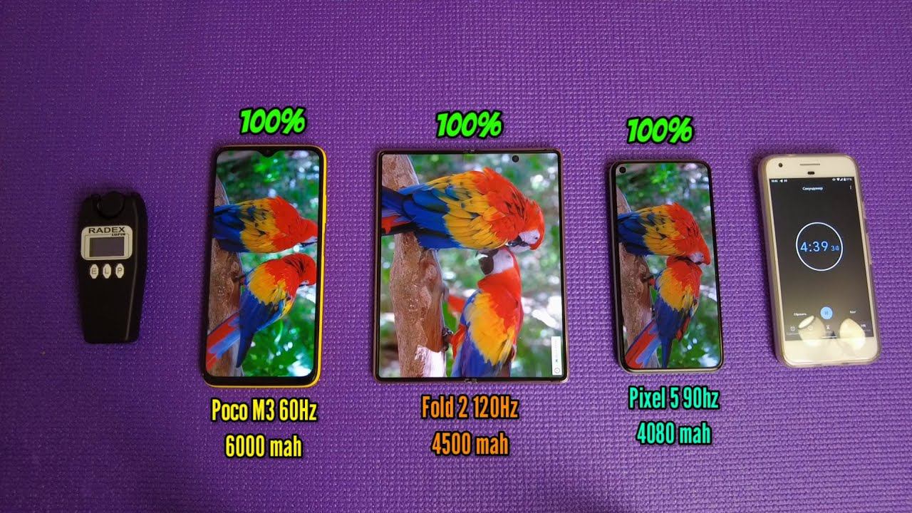 Pixel 5 vs Galaxy Z Fold 2 vs Poco M3. Battery drain test!