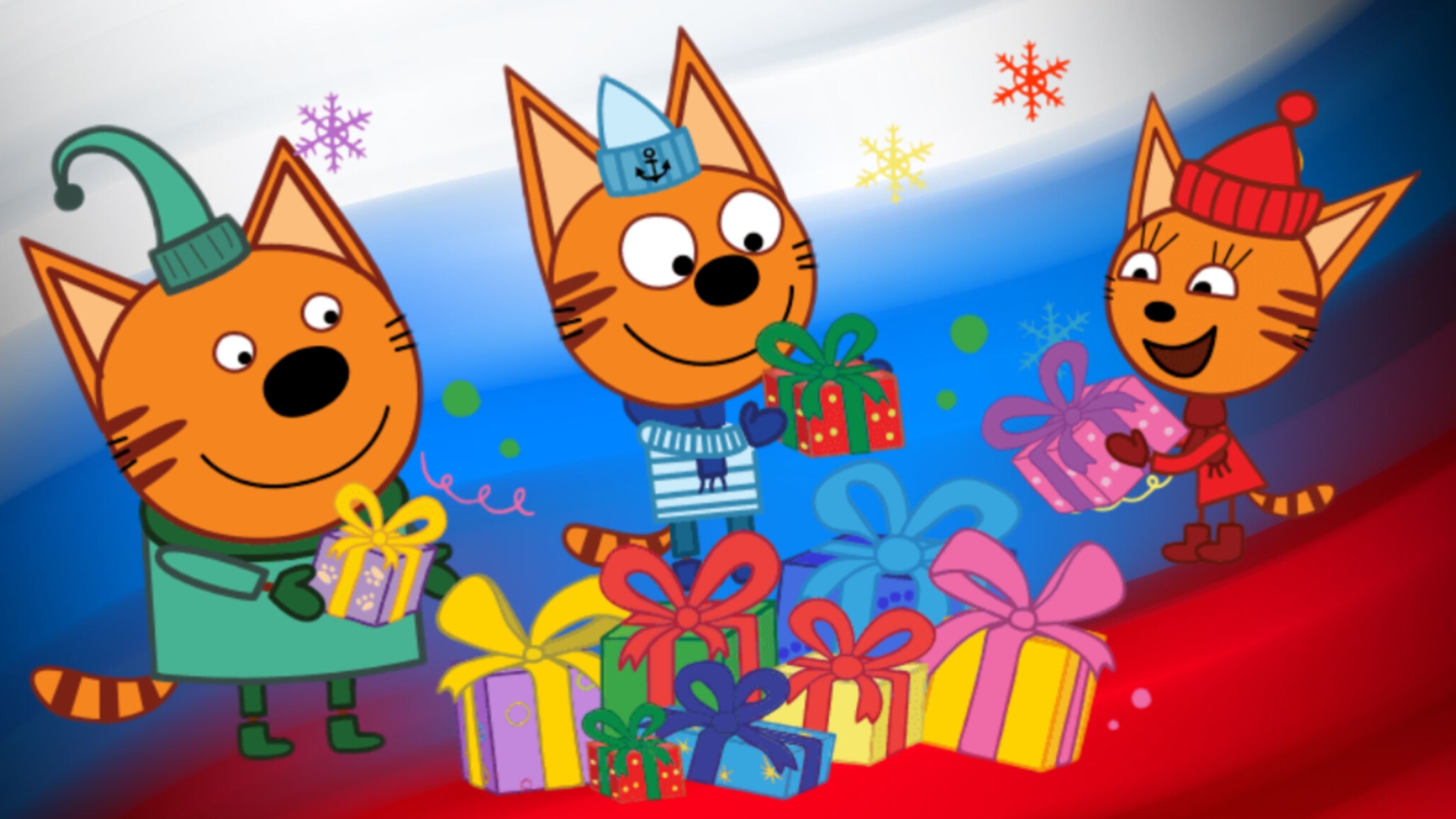 Три КОТА С днём рождения Мультик Музыкальная открытка