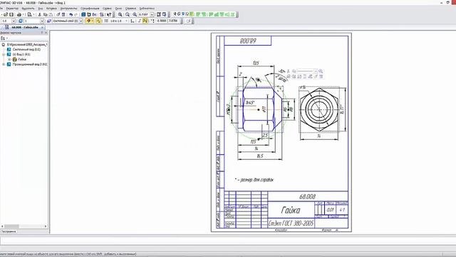 Применение местного разреза на чертеже сделанном по модели. Чертеж 68.008 - Гайка https://kompas.center/