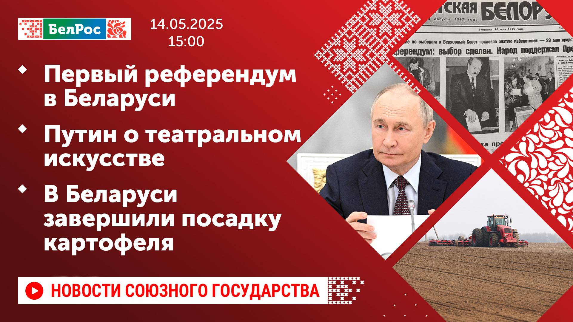 Первый референдум в Беларуси/ Путин о театральном искусстве/ В Беларуси завершили посадку картофеля