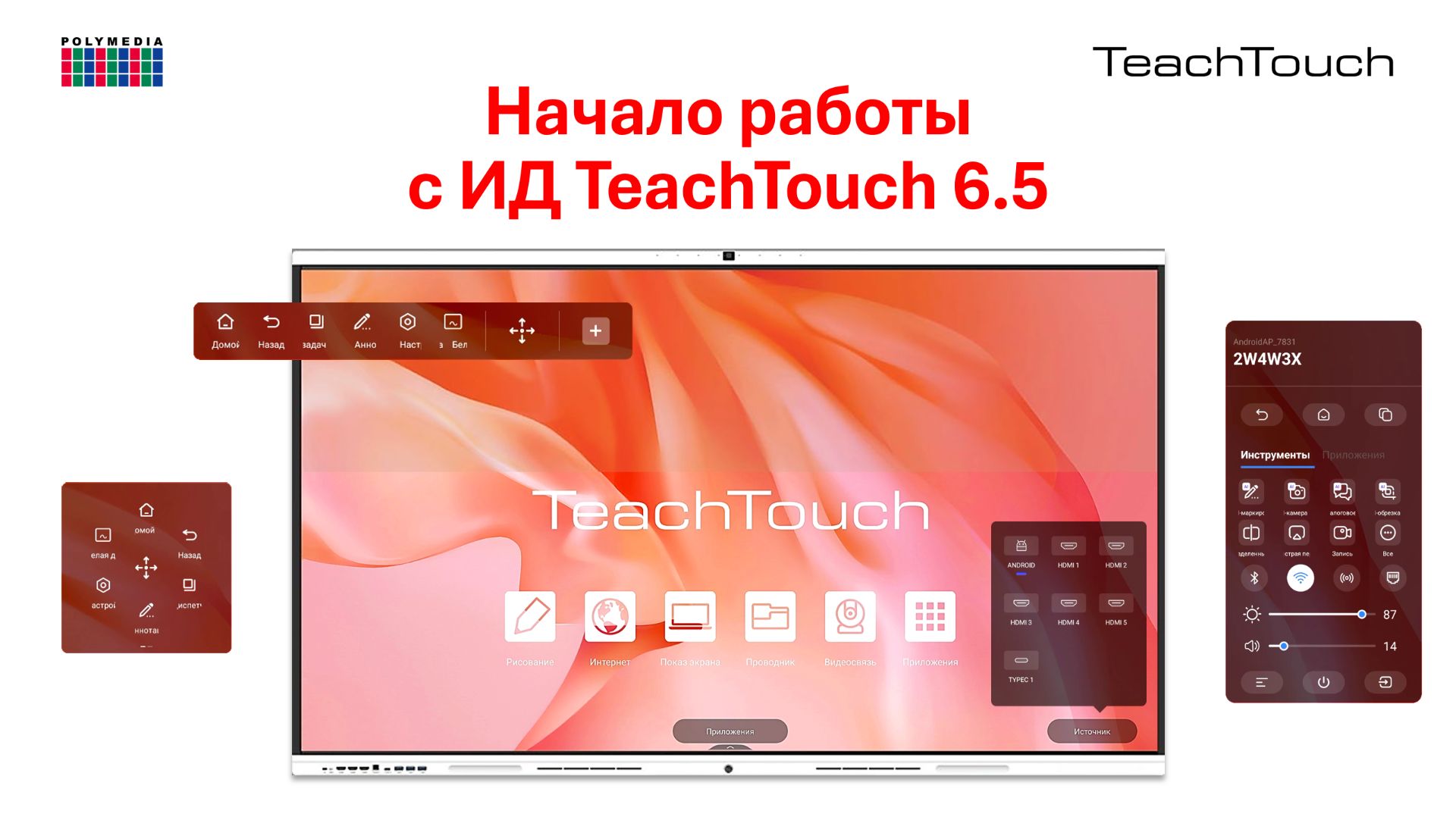 polymedia.ru В видео рассказывается об интерактивном сенсорном дисплее TeachTouch (ИД ТТ) 6.5. Узнаем общую информацию и начало работы с ИД ТТ, рассмотрим все инструменты боковой панели и общие настройки устройства. ▶ 00:04 Введение 01:09 Схема интерфейсов TeachTouch 6.5 02:01 Комплектация ▶ 02:12 Начало работы с ИД ТТ 6.5 02:24 & 03:13 Домашний экран ИД ТТ 6.5 05:09 Приложения и удаление приложения, установленного пользователем 05:25 Редактирование домашнего экрана ▶ 06:45 Плавающая панель инструментов и её настройка ▶ 09:00 Инструменты боковой панели 09:04 ИИ Аннотации 15:01 ИИ Камера 17:49 Чат-бот 19:36 ИИ Скриншот 22:54 Разделение экрана 23:49 Быстрая передача файлов 30:04 Запись [экрана] 31:07 Таймер 31:49 Блокировка 32:05 Заморозка 32:27 Опрос 39:28 Календарь 40:41 Калькулятор 40:53 Сенсор 41:17 Мультиплеер 42:13 Погода 42:44 В центре 43:22 Картинка-в-картинке (P-I-P) 44:14 Суфлёр 44:48 Случайный выбор 45:34 Табло 46:24 Свернуть 46:40 ВКЛ\ВЫКЛ Bluetooth, Wi-Fi 46:45, точки доступа 46:50, LAN 46:56 47:03 Регулировать яркость экрана 47:10 Регулировать уровень звука 47:18 Настройте экран ИД ТТ: звук, экран, изображение и общие настройки 48:05 Список источников (для быстрого перехода) 48:16 Выключить ИД ТТ: выключить ИД ТТ, спящий режим и перезагрузка 48:21 Переключить на список приложений 48:36 Запущенные приложения ▶ 48:57 Настройки 49:10 Беспроводная сеть: настройки подключений 49:17 Персональный: настройки заставки, параметров плавающего инструмента, навигации, настройки жестов 49:48 Ввод, вывод: настройки , управление оборудованием (микрофона) и источника 50:04 Система: настройки даты и времени, языка, клавиатуры, хранилища, запуска и завершения работы ИД ТТ 50:26 Безопасность: настройка блокировки экрана, системы, приложений и разрешение устанавливать приложения из неизвестных источников 50:40 Об устройстве: имя устройства, версия Android, ядра, номер сборки; сбрасывание заводских настроек; режим разработчика ▶ Каталог TeachTouch: https://www.polymedia.ru/oborudovanie/interaktivnoe-oborudovanie/ ▶ Техническая поддержка пользователей TeachTouch: https://www.polymedia.ru/service/new.php