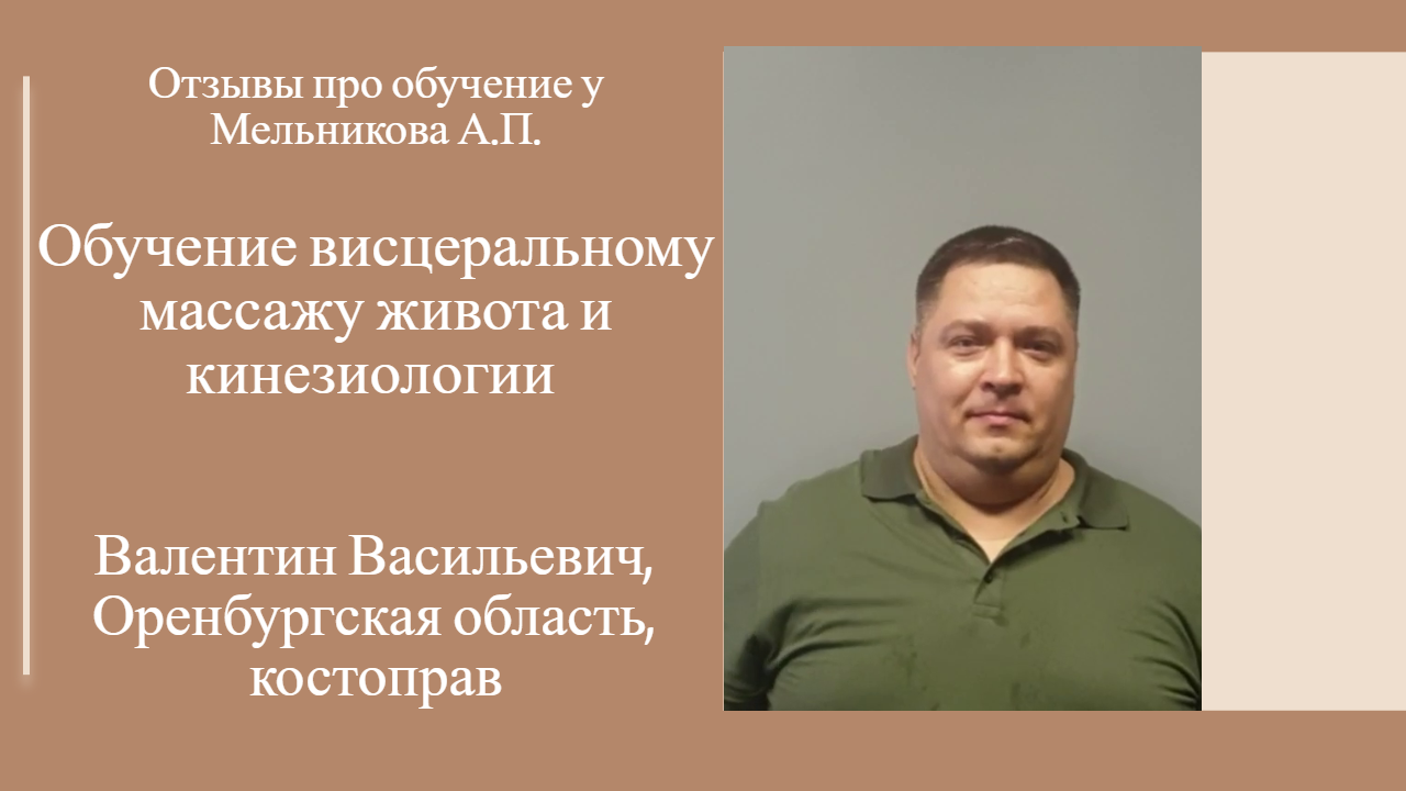 Отзыв про обучение висцеральному массажу живота и кинезиологии у Мельникова А.П..