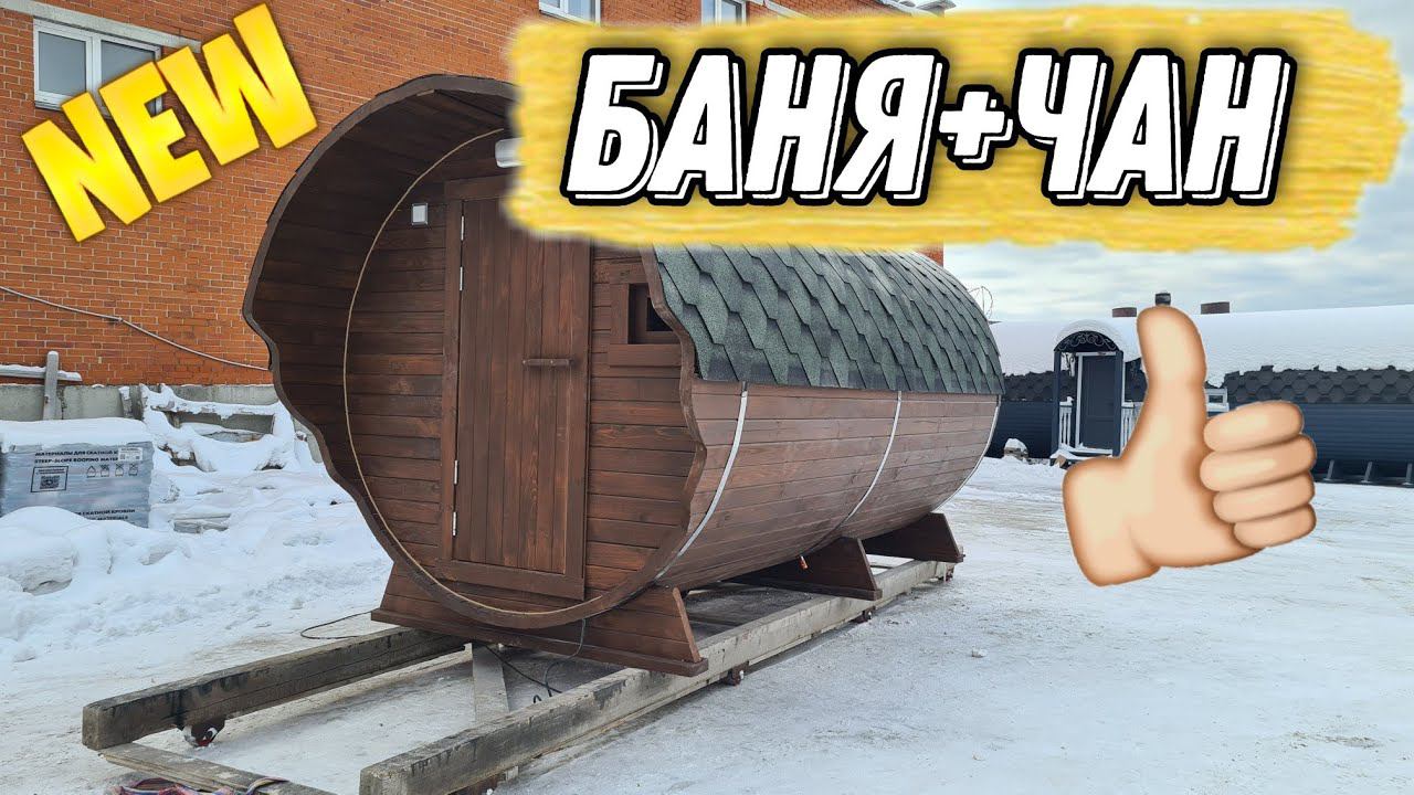 Бюджетная но уютная баня-бочка с парной из кедра +чан из нержавейки!