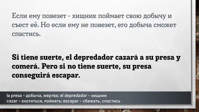 Данный материал предназначен исключительно в образовательных целях. Данный материал частично был синтезирован с помощью искусственного интелекта. Цель – заставить мышление учащегося формировать фразы, части фраз, на испанском языке. Каждая фраза повторяется три раза. Повторения происходит не подряд, а с некоторым "смещением", заставляя всё время мысленно переключаться на другую фразу. Пауза между фразами служит для того, чтобы вспомнить хотя бы одно слово, часть фразы или всю фразу на испанском языке. Чем длиннее фраза на русском языке – тем длиннее пауза до фразы на испанском языке. Достаточно, если человек самостоятельно начинает формировать хотя бы кусочки фразы, некоторые слова. Данный вид упражнений не стоит делать более одного часа за один раз. Достаточно прослушивать такие упражнения в фоновом режиме: замимаясь домашними делами, находясь в дороге или на прогулке, занимаясь спортом. Использйте для обучения только тот материал, который Вы понимаете на 90%-95%! Иностранные языки не учат. К иностранным языкам привыкают. Чтобы выучить любой язык необходимо «провести с ним» 10 000 часов. Выпуск основан на фразах, взятых на самых разных ресурсах. Все права собственности принадлежат владельцам оригинальных сайтов: https://www.unlimitedspanish.com https://www.useyourspanish.com https://www.podcastfromspain.com https://podcast.duolingo.com https://www.spanishpodcast.net https://aprendemosjuntos.bbva.com #испанский #испания #слова #фразы #aprender #español #españa #español #испанскийязык #испанскийбесплатно #испанскийэффективно #учимиспанский #испанскийучить #shadowing #ShadowingTechnique #Lerntechnik #произношение #грамматика #subjuntiv #expresiones #shadowingmethode #эффективно #españolonline #españoloffline #aprenderespanolonline #pimsleur #paulpimsleur Слова и выражения из этого выпуска: ================================================ “tener el pulgar verde” - иметь садоводческую жилку, талант к садоводству a este paso - такими темпами a punto de florecer - вот-вот расцветёт afectado - пострадавший, поражённый, затронутый cazar - охотиться, поймать chulo - клёвый, крутой, высокомерный cobrar - зарабатывать distraído - рассеяный, отвлечённый echarle cuento - прикидываться, симулировать el conjunto - совокупность, набор, пакет el depredador - хищник el desfile - парад, показ el hormigón - бетон, цемент el mago - волшебник, маг, колдун, фокусник el miedo - страх el pulgar - большой палец руки el refugiado - беженец el reinado - правление, царствование el árbitro del partido - судья в игре, в матче escapar - сбежать, спастись fue traicionado - против которого было совершено предательство habían muchos niños - было много детей la cabalgata - шествие, парад, процессия на лошадях la moda - мода, тенденции моды, тренд моды la presa - добыча, жертва la sabiduría - мудрость la soberbia - гордыня lanzar - бросать, швырять llorar - плакать mezclar - смешивать, сочетать, совмещать no nos estaba esperando - уже нас не ждал parte del espectáculo - часть представления, шоу pasé dos semanas - я провёл две недели