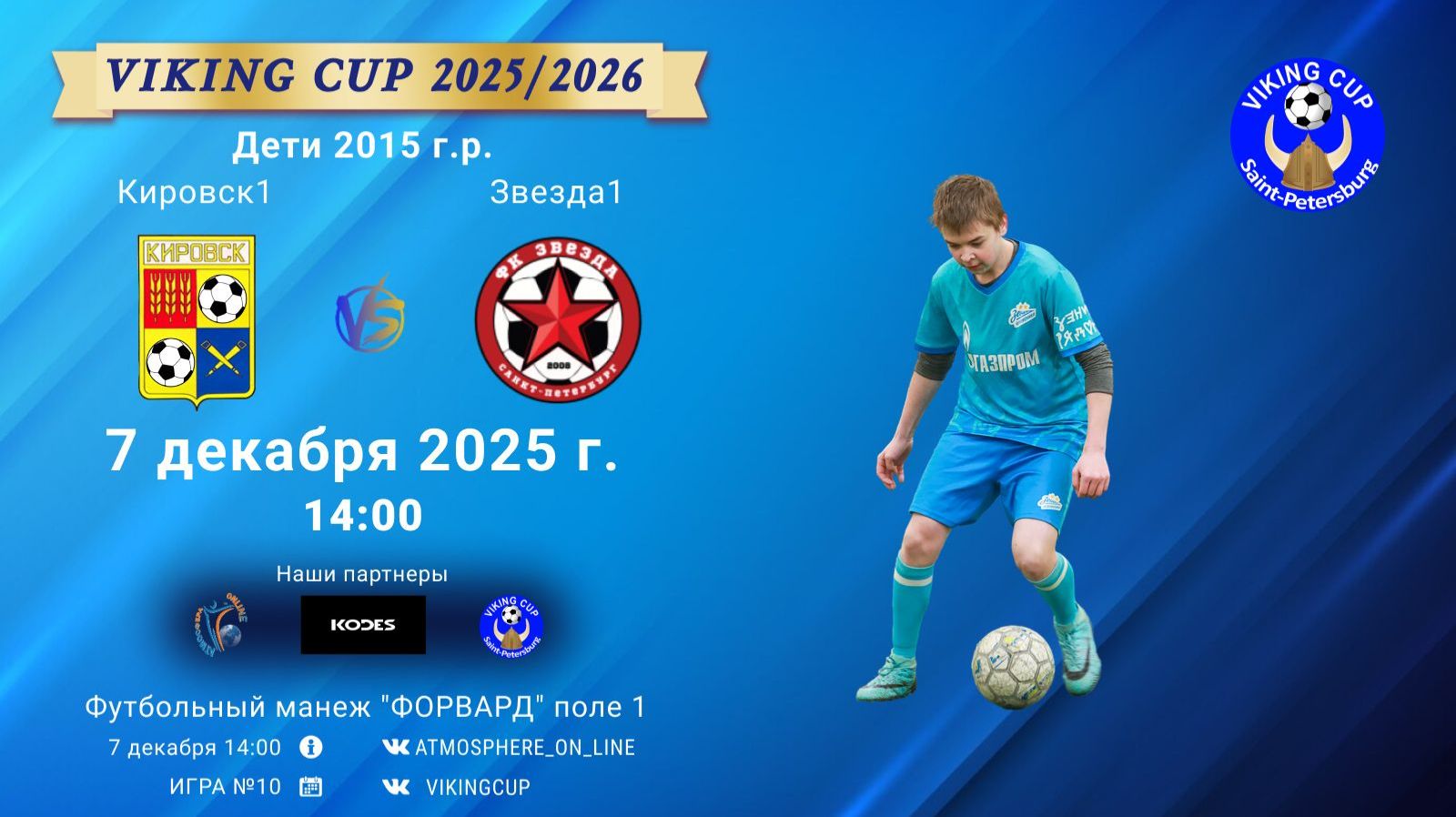 VIKING CUP среди команд 2015 г.р. (U10), Поле 1 7 декабря 2025 САНКТ-ПЕТЕРБУРГ, ФЦ "Форвард" ФК "Кировск1" - ФК "Звезда1"/VIKING CUP, Игра №10, 07-12-2025 14:00