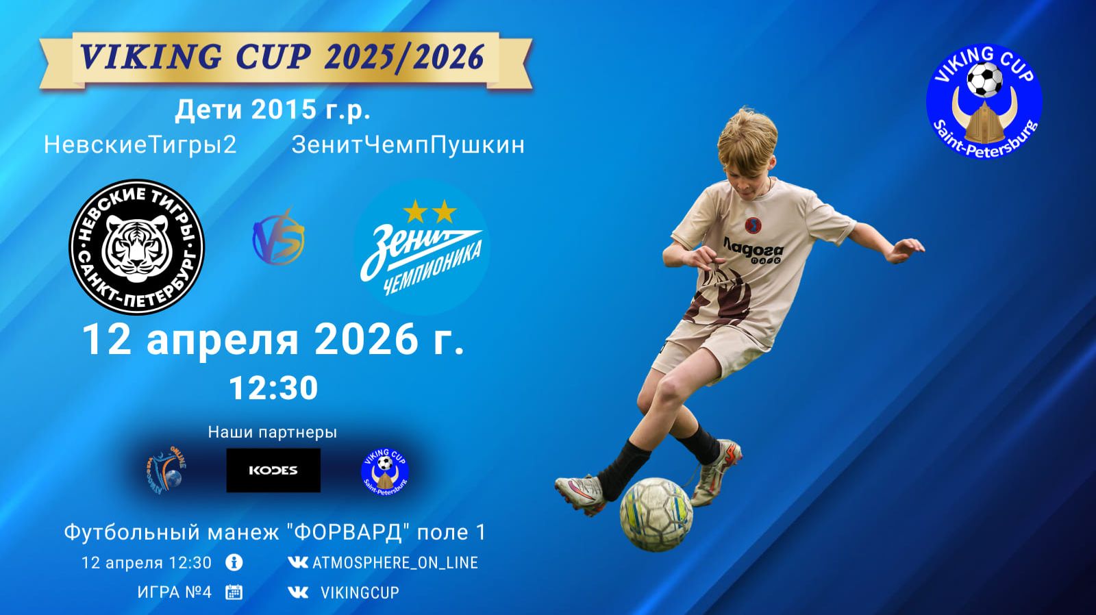 VIKING CUP среди команд 2015 г.р. (U11), Поле 1 12 апреля 2026 САНКТ-ПЕТЕРБУРГ, ФЦ "Форвард" НевскиеТигры2-ЗенитЧемпионикаПушкин/VIKING CUP, Игра №4, 12-04-2026 12:30
