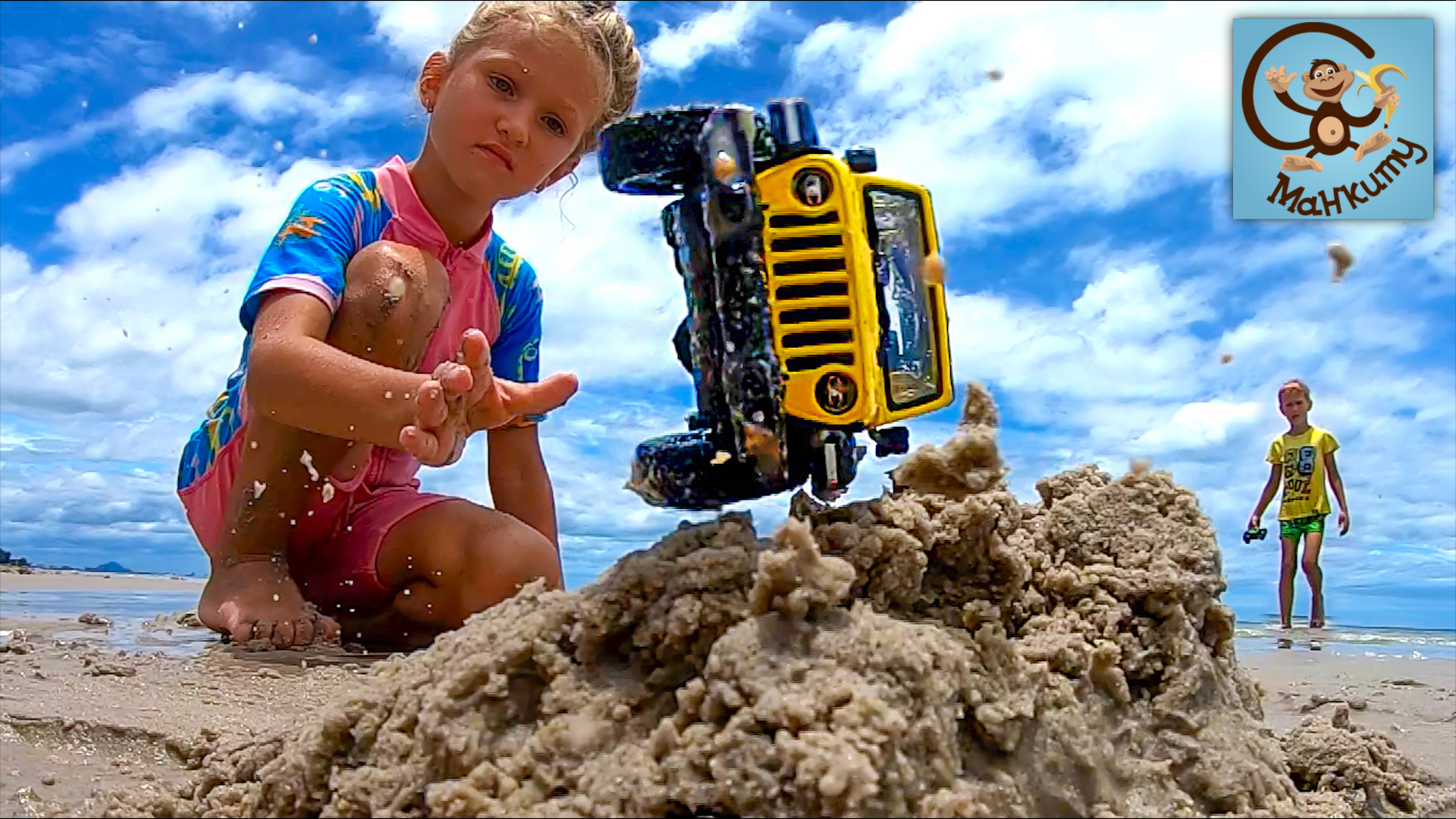 Дети и Машинки игрушки - Играем машинками на пляже. Манкиту