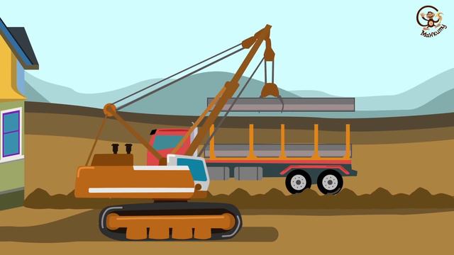 Мультик про Машинки - Строительная техника строят дом. МанкиМульт