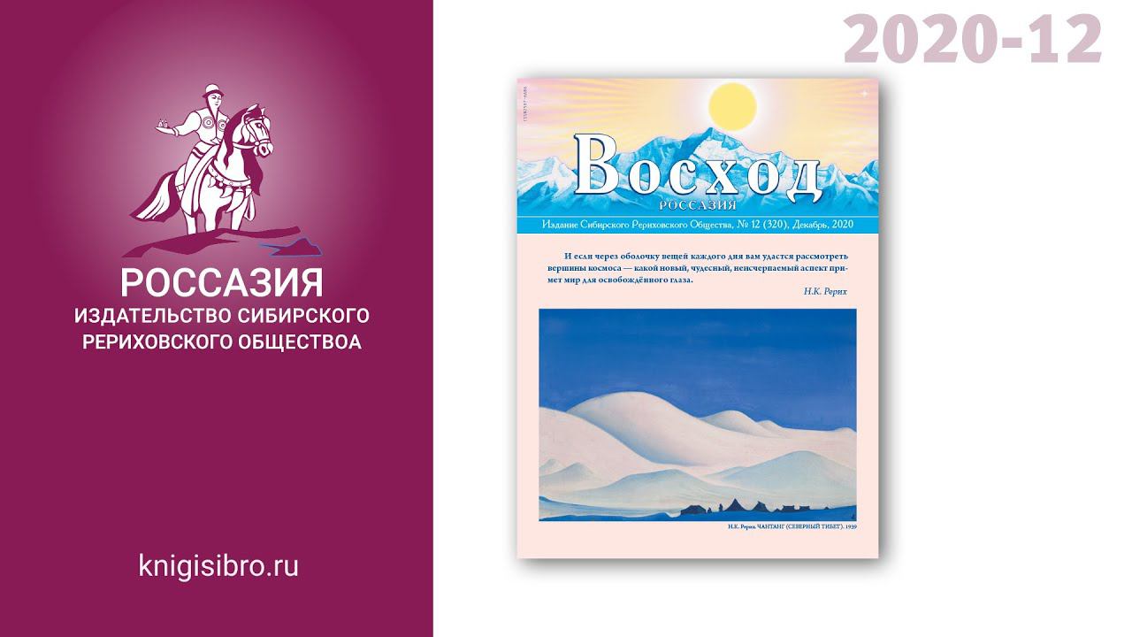 Журнал в книжном магазине: https://knigisibro.ru/books/detail/47379 Сайт журнала: https://rossasia.sibro.ru/voshod/ Комплекты журналов за прошлые года: https://knigisibro.ru/books/1256/ Выступает: Н.М. Кочергина, гл. редактор. ●●● Журнал "ВОСХОД. РОССАЗИЯ", № 12, декабрь 2020 г. Содержание: ● Н.Д. СПИРИНА. Жизнь и смерть сердца ● Н.К. РЕРИХ. Бережливость ● «Памятование о носителях Света...» Из «Граней Агни Йоги» ● Н. КОЧЕРГИНА. «Истинный наставник и друг человечества». Н.К. Рерих в воспоминаниях близких и сотрудников. ● «Устремимся к нежному сердцу Наталии Дмитриевны». К Памятному дню Н.Д. Спириной 10 декабря. ● Жемчужины Учения Живой Этики. ● Ю. ЦЫГАНКОВА. Священный талисман на победу. Посвящается А.В. Суворову. ● С. ДЕМЕНКО. «За таинством в серебряной оправе...» === Цитата из номера: === Н. КОЧЕРГИНА. «Истинный наставник и друг человечества». Н.К. Рерих в воспоминаниях близких и сотрудников. /.../« На встречах и мероприятиях Сибирского Рериховского Общества за эти годы было представлено немало докладов, слайд-программ, фильмов и выставок, посвящённых Николаю Константиновичу Рериху. В них освещались разные грани его необычайно разносторонней деятельности, и перед нами представал великий художник, учёный — археолог и историк, глубокий знаток искусства, писатель и поэт, организатор и участник грандиозных экспедиций, общественный деятель мирового масштаба, создатель Пакта по защите художественных ценностей, Водитель Культуры. Сегодня же мы обратимся к воспоминаниям тех, кто был рядом с Николаем Рерихом на разных этапах его жизни, чтобы приблизиться к дорогому Облику, почувствовать, каким был в жизни этот великий дух, пришедший на землю в самый критический момент её существования и озаривший наш предрассветный мрак светом своего сердца. У Святослава Рериха, младшего сына художника, есть высказывание, которое можно назвать ключевым для понимания Н.К. Рериха как человека. Он говорил: «Когда я думаю о своём отце и вспоминаю своё длительное близкое общение с ним, я вижу, как над всеми его изумительными достижениями и его вкладом в нашу культуру возвышается личность художника, его неповторимая индивидуальность. (...) С огромным трудом можно найти примеры, когда великий художник оказывался ещё более великим человеком. Мне выпало счастье видеть [этот живой пример] в лице моего отца и моей матери. И их светлые образы навсегда останутся для меня источником величайшего вдохновения и величайшего счастья»2. Елена Ивановна Рерих, жена и другиня Н.К. Рериха, как никто другой понимала всё величие, глубину и красоту его духа. Она писала: «Николай Константинович... истинный вождь и действенный строитель, ибо он знает жизненную битву и закаляет сотрудников к принятию этого боя. Он поражатель всего тёмного и невежественного. Иногда кажется, что его мудрость и предвидение неисчерпаемы, и близкие ему могут подтвердить, как он задолго указывал на события, сейчас уже совершившиеся на наших глазах, и на то направление, которое человечество должно будет принять, если не хочет погибнуть в создавшемся смятении» /.../ ● Полный текст статьи: https://rossasia.sibro.ru/voshod/article/53069 ----- В 1993 году учрежден собственный печатный орган Сибирского Рериховского Общества – газета “Перед Восходом”, которая впоследствии преобразовалась в полноцветный иллюстрированный журнал “Восход”. С момента основания его главным редактором была Наталия Д
