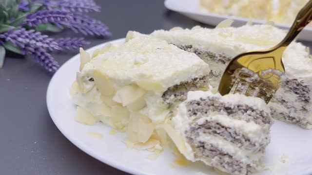 Диетический маковый торт с лимонным кремом! без муки! без сахара!