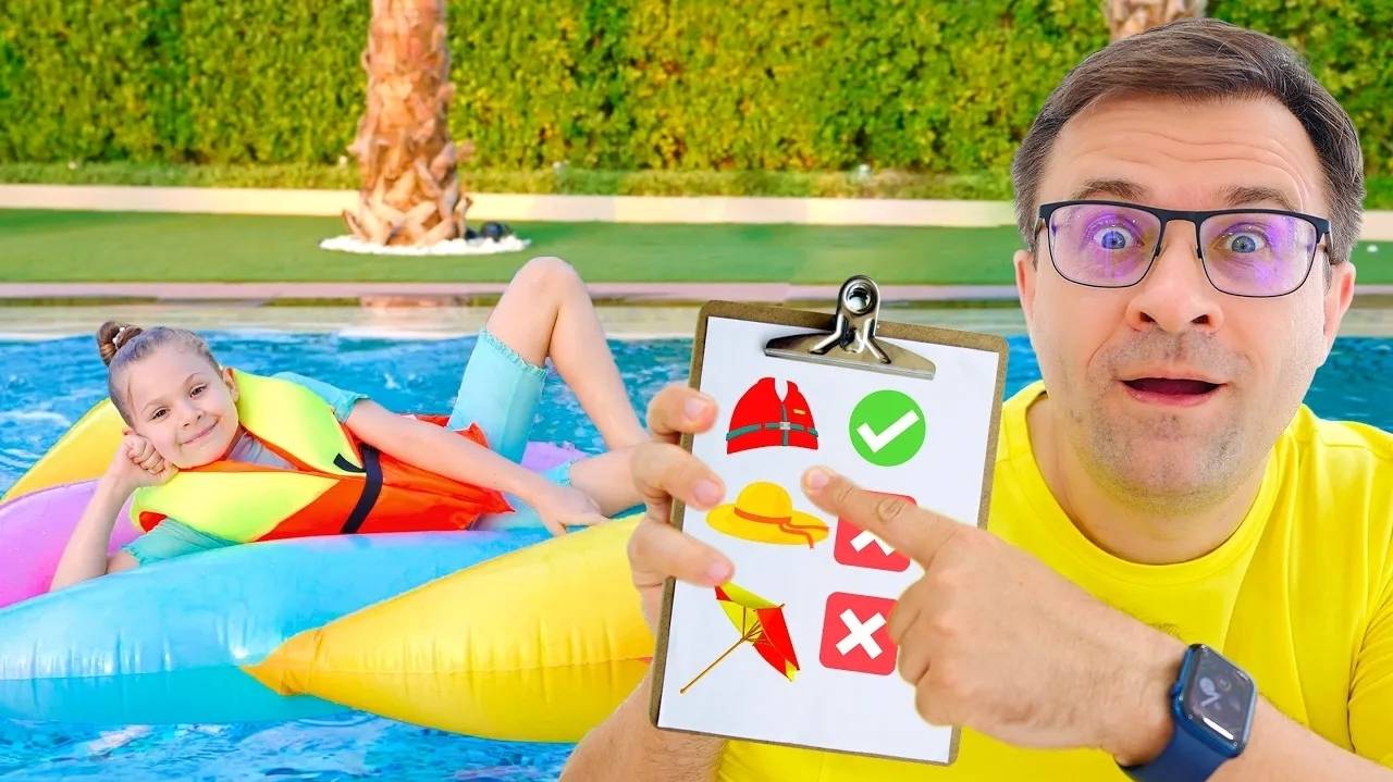 Диана учится безопасно плавать под присмотром родителей