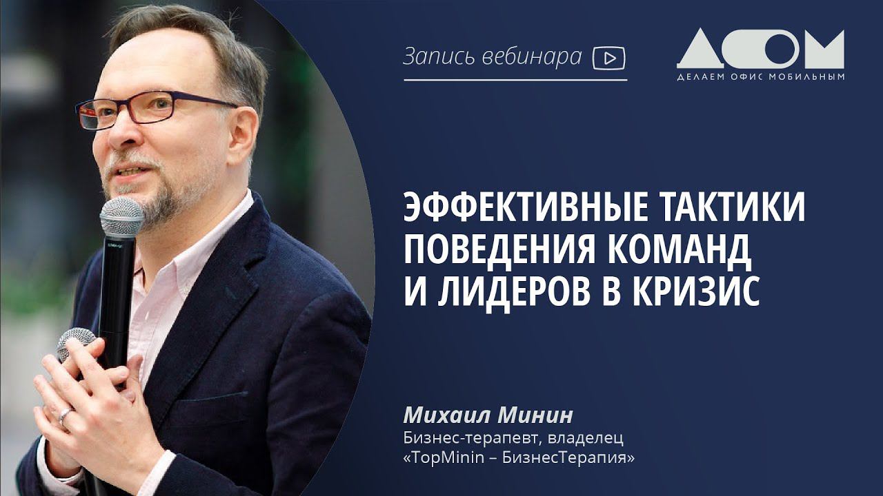 Какой он — успешный антикризисный лидер – рассказывает бизнес-терапевт, владелец «TopMinin — БизнесТерапия» Михаил Минин. 00:00-Видео МГУУ Правительства Москвы 2:00-О предстоящих вебинарах 5:45-Вступление 7:54-Знакомство 8:39-О спикере 11:17-О чем поговорим на вебинаре? 12:53-Кризис — это 18:17- Лидер — это 21:49- Концепция «Humanorg» 25:47-Управление/Менеджмент — это 29:51-Управленческий цикл 31:53- 2 антикризисных роли 33:44-Уровни и горизонты управления 40:46-Малые и мобильные команды 45:32-Делегирование только того, что члены команды уже делали 47:39-Принятие решений от реального результата, а не его ожидания 50:36- Мотивация на основе фактов, а не ощущений 53:32- Внимание на тех, кто является ключевой и опорной частью успеха 57:05- Работа короткими спринтами 58:56-Лидер в кризис — это решительность и ответственность 1:00:23-Победа будет за вами! 1:00:53-Вопросы к спикеру