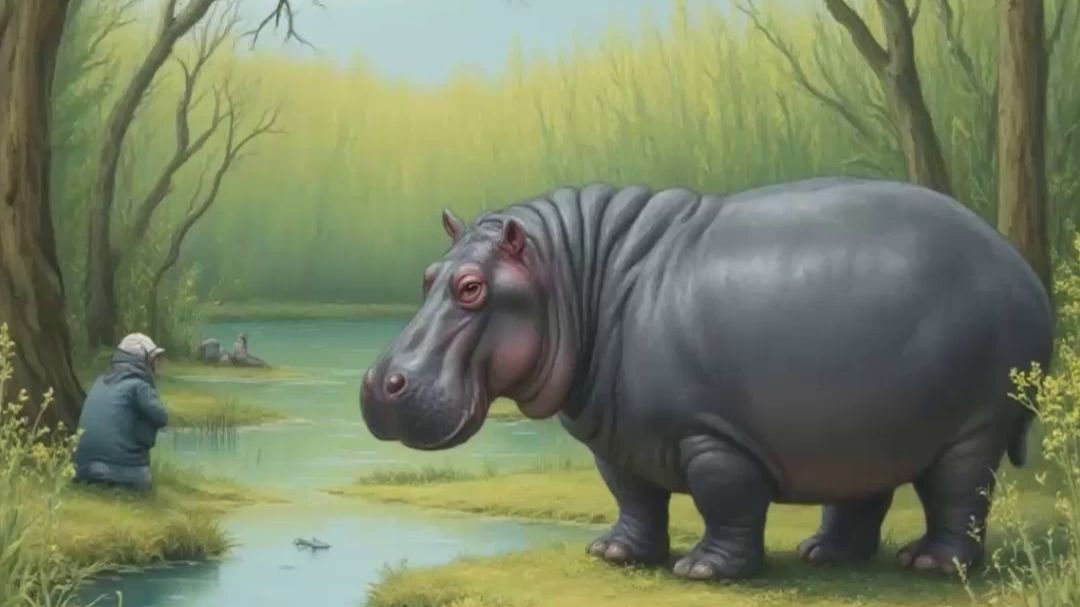 Видео из рисунка. Песня: Одинокий бегемот. Эту песню поёт: Искусственный интеллект мужским голосом