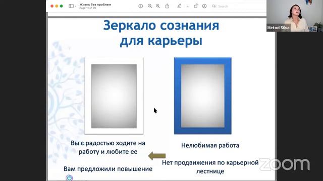 https://metodsilva.getcourse.ru/marafon/manifesting-full В этом видео Ирина Хайтин-Хлимоненко делится примерами применения техники «Зеркало сознания». Для работы со здоровьем: в синей раме вы видите свою текущую ситуацию, затем стираете проблему, передвигаете зеркало немного влево и меняете цвет рамы с синего на белый. В белой раме - вы в идеальном здоровье. Как вы выглядите если ваше здоровье в порядке? Как вы себя ощущаете? Как вы двигаетесь? Как вы говорите? Что вам говорят другие люди? И так далее. И после этого мы не возвращаемся к синей раме, визуализируем только решение в зеркале с белой рамой до появления обратной связи. Если у вас ситуация ссоры с супругом или плохие отношения с начальником, в синей раме представляете то, как вы общаетесь, постарайтесь понять причину проблемы, затем стираем, перемещаем влево, меняем цвет рамы на белый и создаем образ решения. Мы смещаем фокус на решение, как вы хотите общаться с мужем? Если у вас недопонимание с начальником, что для вас, например, взаимопонимание или взаимоуважение? Просто представляете себя в этой ситуации, но в желаемом решении, как бы вы хотели себя ощущать, думать и так далее. Если нет клиентов, вы видите в синей раме, что вы сидите на работе, нет заявок, в почте пусто, телефон не звонит. Стерли, передвинули зеркало влево, поменяли цвет на белый и видите, как к вам начинают приходить клиенты, начинает звонить телефон, на почту приходит заявка. Нелюбимая работа. Часто мы ничего не делаем, потому что не знаем, какое идеальное решение может быть, как это решить. То есть если, например, у вас нелюбимая работа, вы можете не представлять в белой раме, что вы именно на эту работу ходите и любите ее, но вы представляете, как вы хотите себя ощущать. Вы хотите куда-то ходить, вы хотите общаться с коллективом, вы хотите какой-то уровень дохода, какие навыки вы хотите там применять? Кому вы хотите помогать? И так далее. Как только вы начнете задавать себе эти наводящие вопросы, вы сможете создать этот образ в белой раме. Для финансов. Маленькая зарплата - повышение в зарплате, дополнительный доход, вы видите, что на вашем счету больше денег. Какое решение для вас? Неоплаченные счета - увидите, что у вас счета нечем оплачивать, затем представьте, как все счета оплачены. Применяйте для продвижения по карьерной лестнице, для обучения, для освоения нового навыка, эту технику можно применять практически для любой задачи. Главное - применять! 30-дневный онлайн-марафон для тех, кто хочет достигать всех своих целей: https://metodsilva.getcourse.ru/marafon/manifesting-full Дружите с нами в социальных сетях: Инстаграм: https://www.instagram.com/irina_hlimonenko/ Фейсбук: https://www.facebook.com/metodsilva/ Вконтакте: https://vk.com/metodsilvaru Телеграм: https://t.me/metodsilvaru