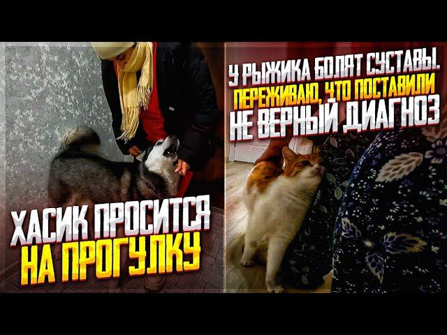От чего же у Рыжика болят суставы? и он подтягивает ножки когда лежит. Хасик просится на прогулку.