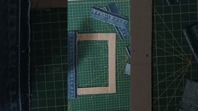 рамка для рисунка из джинсовых обрезков