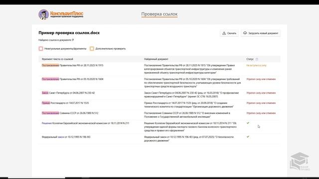 🔥 Новый сервис «Проверка ссылок» Как не потратить целый день на проверку актуальности нормативных актов в договоре контрагента, локальных документах или техническом задании? 📌 Фишки: ❌ Сервис автоматически распознает все нормативные акты в тексте. ❌ Вы мгновенно видите статус каждого документа: действителен он, изменен или уже утратил силу. ❌ Прямые ссылки позволят вам в один клик перейти к тексту документа в системе КонсультантПлюс. 💬 Чтобы подключить сервис, свяжитесь с вашим персональным менеджером.