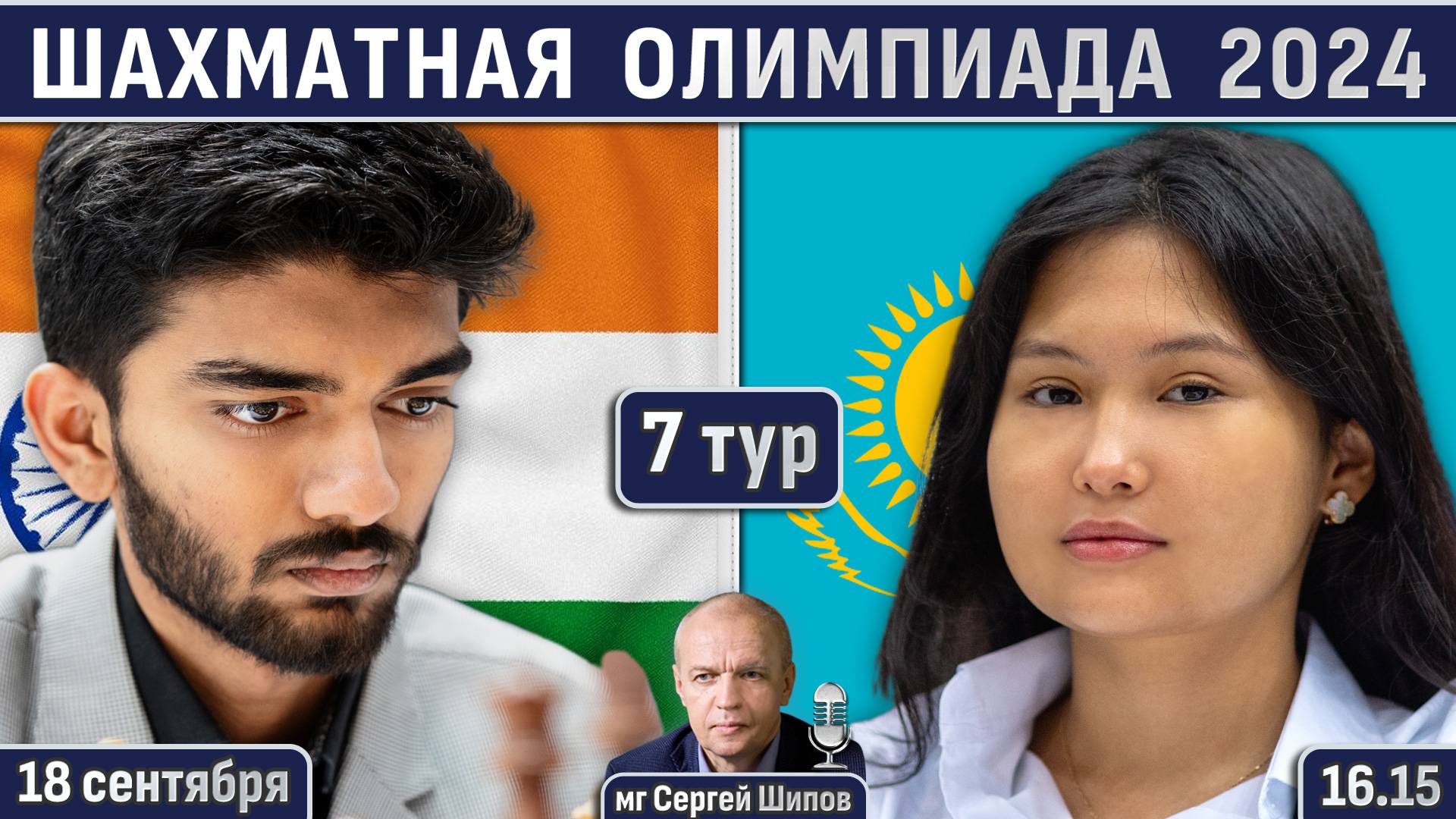 Шахматная олимпиада 2024, 7 тур ⏰ 18 сентября, 16.15 🎤 Сергей Шипов ♕ Шахматы