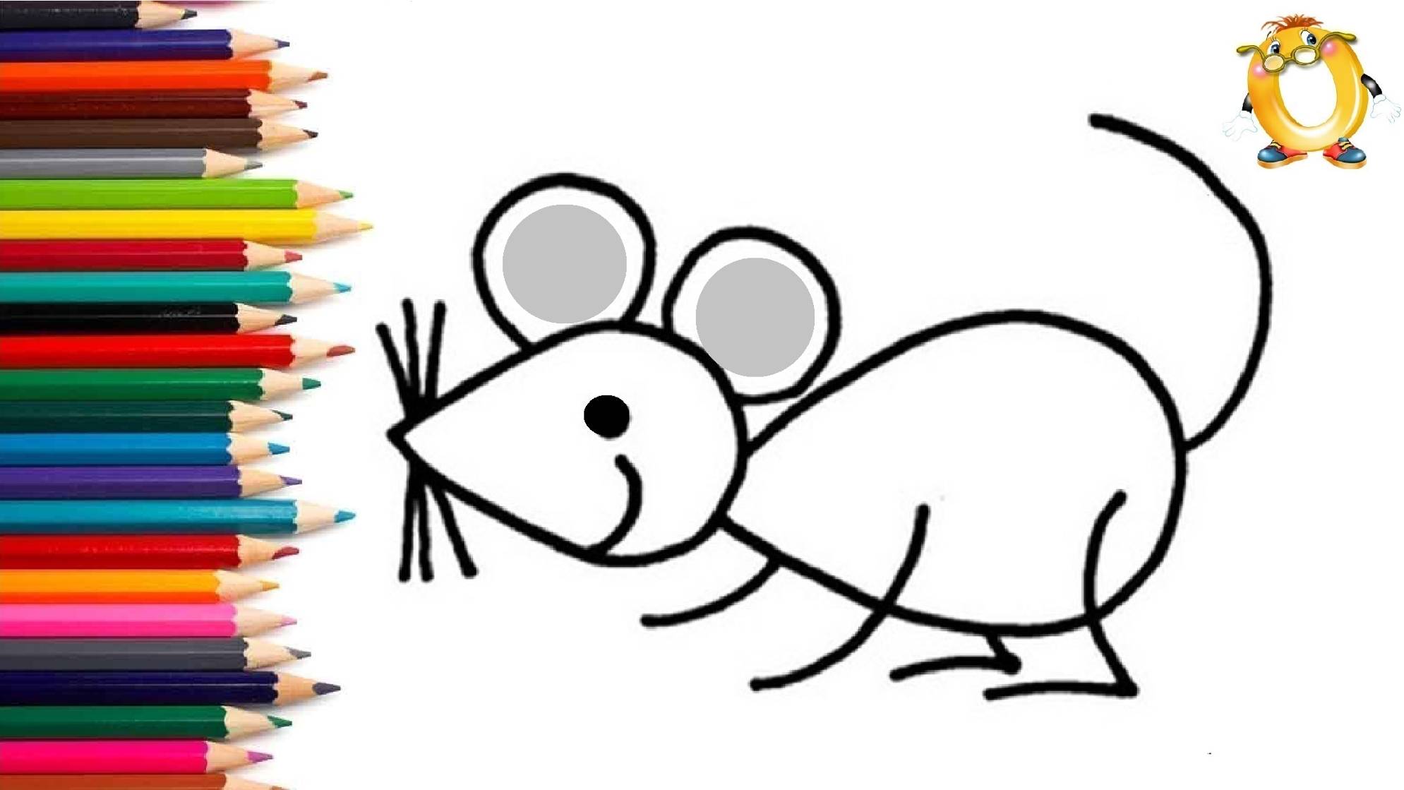 Мультик - раскраска для детей МЫШОНОК. Учимся как рисовать МЫШКУ вместе с детьми // ОБУЧАШКА ТВ
