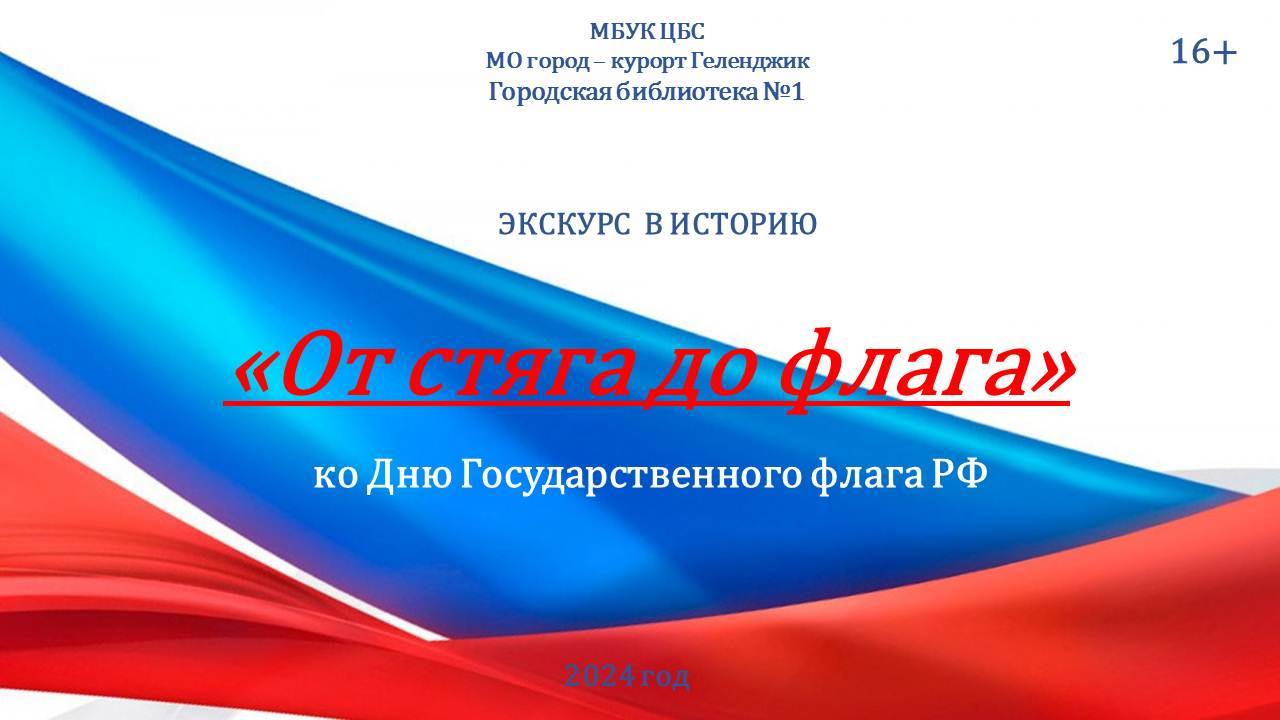 22 августа празднуется День государственного флага Российской Федерации. Городская библиотека №1 подготовила информ-досье «От стяга до флага», посвященное этому знаменательному празднику. Уважение к флагу — это уважение к своей истории, культуре и традициям, это знак сильной и независимой страны. В представленном экскурсе много интересных фактов из истории появления и «жизни» российского триколора. День Российского флага – праздник, который помогает объединить общество на вечных ценностях – патриотизме, государственности. Во флаге Российской Федерации заключено понятие о русском характере и менталитете - это духовность, нравственная чистота, готовность к самопожертвованию и героизму. Этот праздник вызывает чувство гордости за нашу великую страну, за наших соотечественников. #ЧитающийГеленджик, #БиблиотекиГеленджика