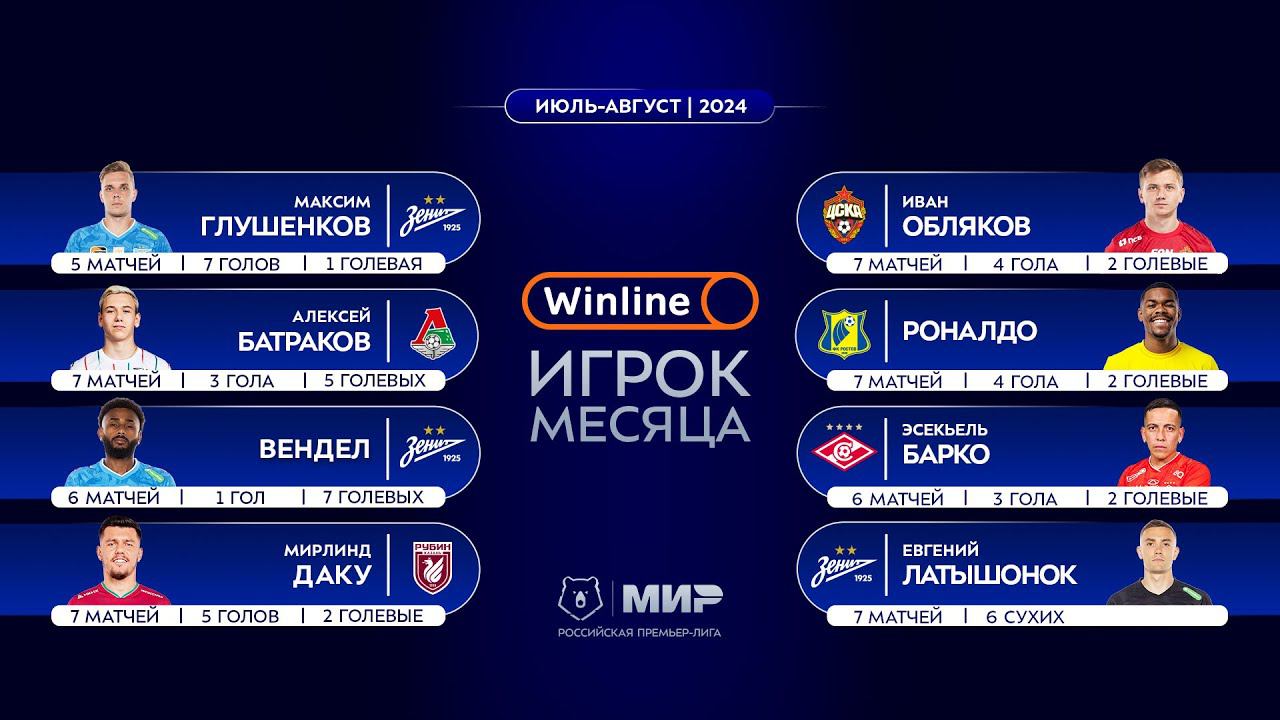 Winline игрок месяца | Июль – август 2024 | Претенденты