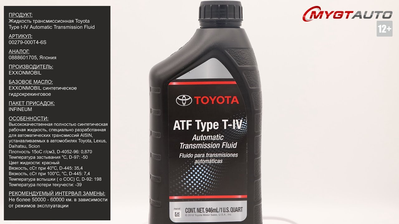 Продукт: Трансмиссионная жидкость Toyota Type t-IV Automatic Transmission Fluid Наш телефон: 8-800-550-57-22 ПН-ПТ 9.00-17.00 (МСК+4) Артикул: 00279-000T4-6S Аналог: 0888601705, Япония Производитель: EXXONMOBIL Базовое масло: EXXONMOBIL Синтетическое, гидрокрекинговое Пакет присадок: INFINEUM Ссылка для покупки: https://mygt.ru/Oil/selection/toyota-atf-type-t-iv-0946-l.html Особенности: - Высококачественная полностью синтетическая рабочая жидкость, специально разработанная для автоматических трансмиссий AISIN, устанавливаемых в автомобилях Toyota, Lexus, Daihatsu, Scion - Плотность 15оС г/см3, D-4052-96: 0,870 - Температура застывания D-97: -50°C - Цвет жидкости: Красный - Вязкость, сСт при 40°C, D-445: 5,4 - Вязкость, сСт при 100°C, °C, D-445: 7,4 - Температура вспышки D-92: 198°C - Температура потери текучести: -39°C - Рекомендуемый интервал замены: не более 50000 - 60000 в зависимости от режимов эксплуатации Ссылки на дополнительные материалы, а также SDS по продукту: http://nskrobot.ru/images/FOTO/MYGT_RU/00279-000T4-01.pdf #характеристикимасла00279000T46S #моторноемасло #antonmygt #mygtru #mygtauto #oemcatalog Наш сайт: MYGT.RU Наш канал ПРАВДА ПРО АВТОМАСЛА: https://www.youtube.com/channel/UC5JygfcXAA5Xq18sxUx_wIQ/ Телефон: 8 800 550 57 22 Бесплатно по России. Внимание! Полное либо частичное копирование данного материала без согласия автора допускается только при указании ссылки на источник (данный канал). Все права защищены. ANTON_MYGT #anton_mygt #anton_voronkov #mygtauto #масломан #каталог масел и спецжидкостей