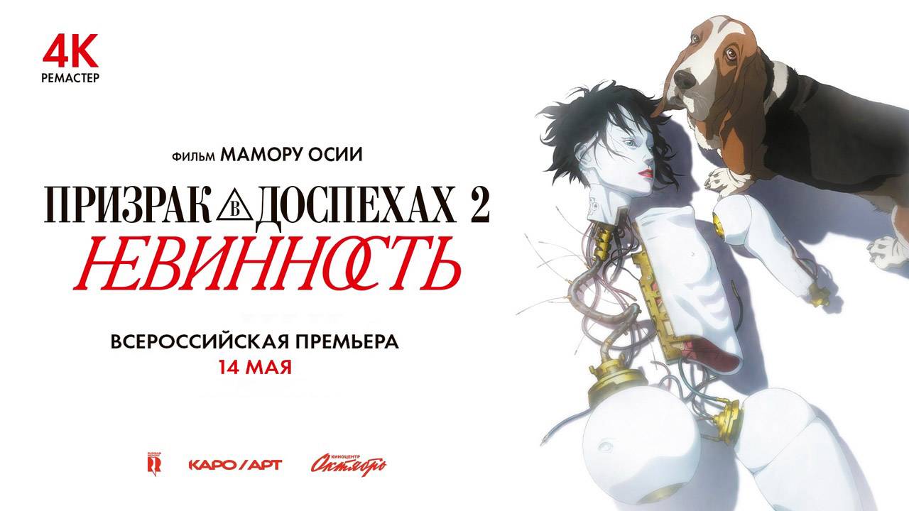 Культовое японское аниме «Призрак в доспехах 2: Невинность» (Innocence) собрало за месяц проката почти 2,65 млн рублей. Это продолжение «Призрака в доспехах» 1995 года. Легендарный мультфильм Мамору Осии впервые показан после 4К-реставрации на больших экранах России, Беларуси и Кыргызстана. Премьера ленты состоялась на Каннском кинофестивале в 2004 году, где она была номинирована на «Золотую пальмовую ветвь».