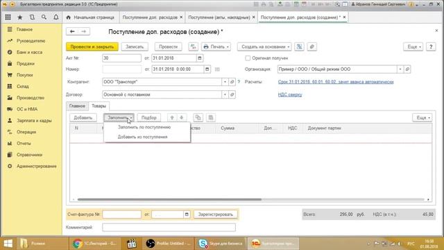 Обучение 1С. Видеоуроки. Как включить дополнительные расходы в стоимость ТМЦ