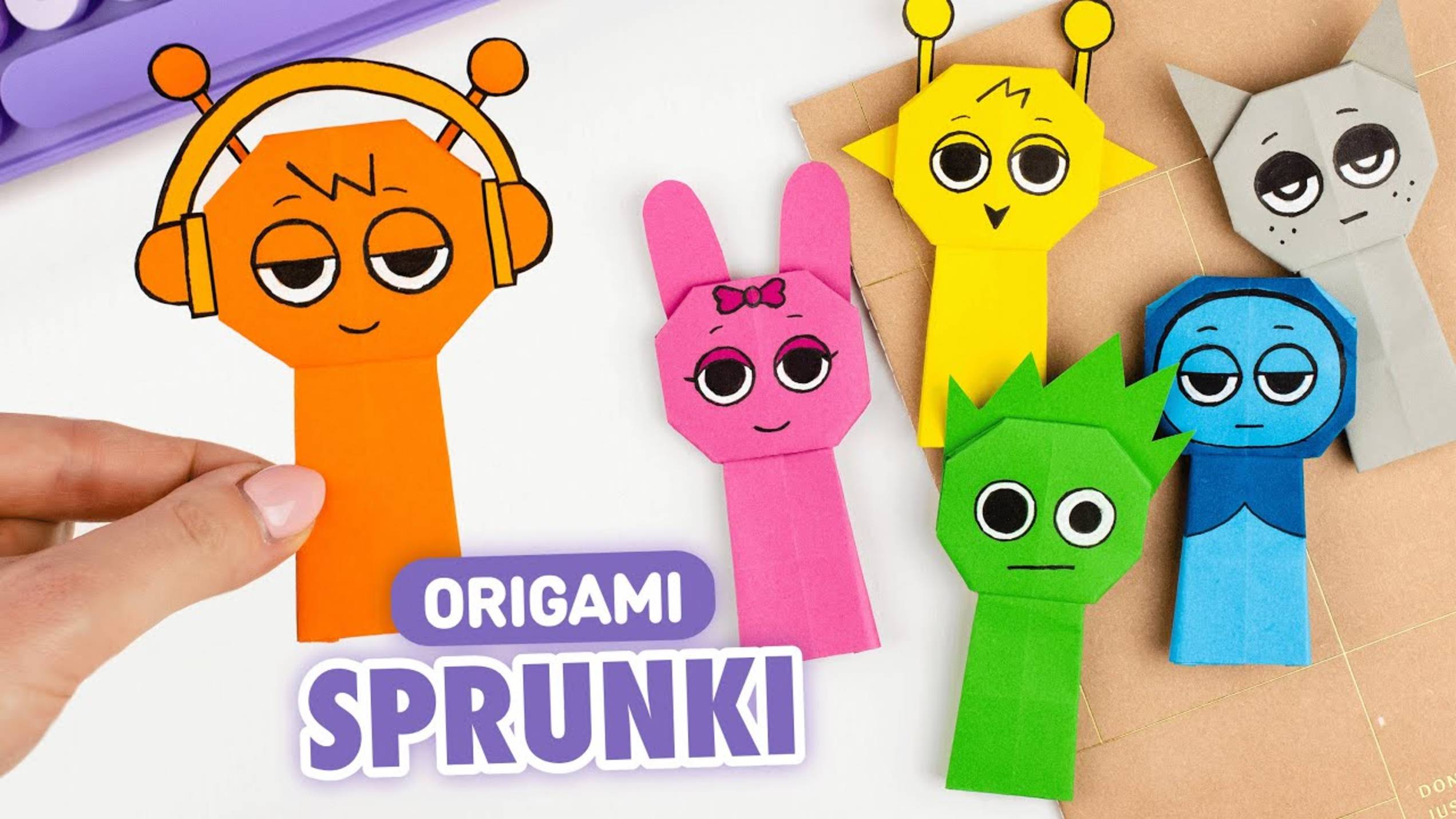 В этом видео я покажу, как сделать оригами персонажей из игры Спрунки! Выбирай своего любимого персонажа и мы начинаем! Это оригами совсем не сложное, получится у каждого. Кстати ты можешь использовать этих милашек как книжную закладку или сделать сквиш. Не забудь сделать и любимых персонажей своих друзей, они точно будут в восторге от твоего подарка! Кстати, а какой персонаж твой любимый? Нам понадобится: лист бумаги 20х10 см ножницы, маркеры и клей бумага для деталей