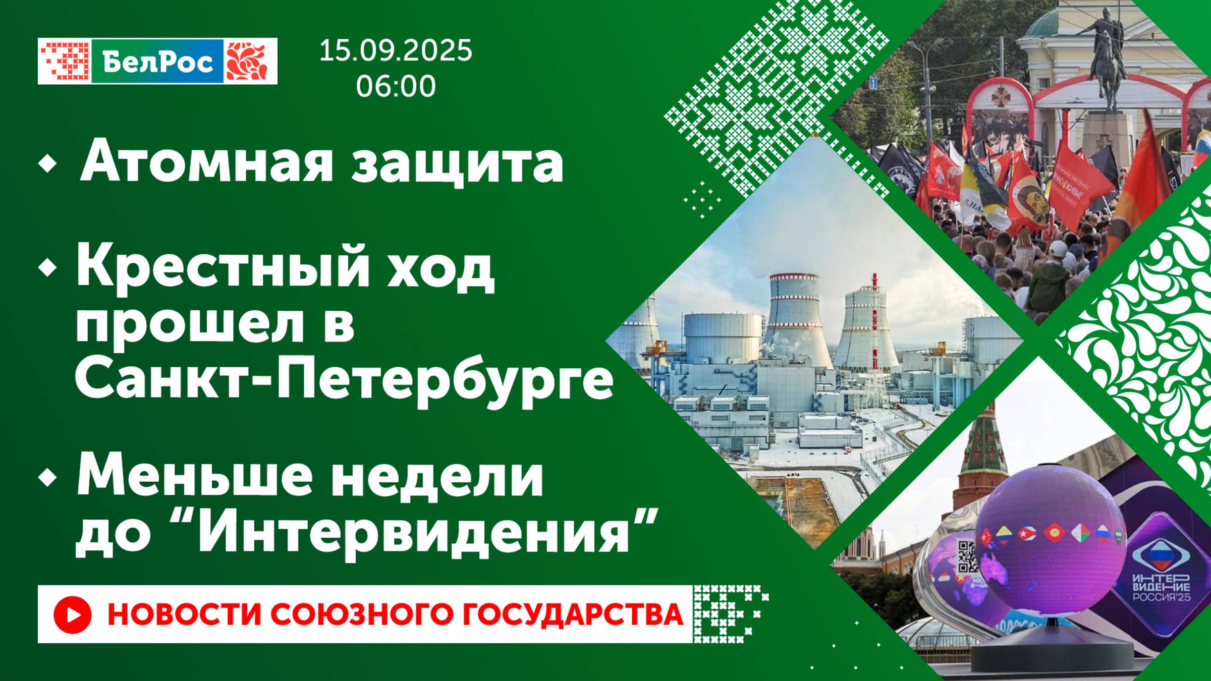 Закадровый текст озвучивает *ИИ Антон* Новости 15.09.2025 на 06:00 - Ключевой элемент защиты реактора установили на Ленинградской АЭС-2 - Грузовой космический корабль «Прогресс МС-32» пристыковался к МКС - Крестный ход в честь перенесения мощей Александра Невского прошёл в Санкт-Петербурге - Меньше недели до начала музыкального конкурса «Интервидение-2025» - Старт международного фестиваль циркового искусства Смотрите главные новости Союзного государства на телеканале БелРос. Ссылки на наши соц. сети Сайт: http://belros.tv/ Telegram: https://t.me/belrostv Одноклассники: https://ok.ru/group/55657426976918 ВКонтакте: https://vk.com/belrostv TikTok: https://www.tiktok.com/@belros_tv?_t=... RuTube: https://rutube.ru/channel/23501830/ Яндекс. Дзен: https://zen.yandex.ru/belrostvv Наши подкасты на Яндекс. Музыке: https://music.yandex.ru/album/25615251 #главныеновости #новостисегодня #СоюзноеГосударство