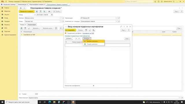 Работа с подарочными сертификатами в 1С: Розница | Микос Программы 1С