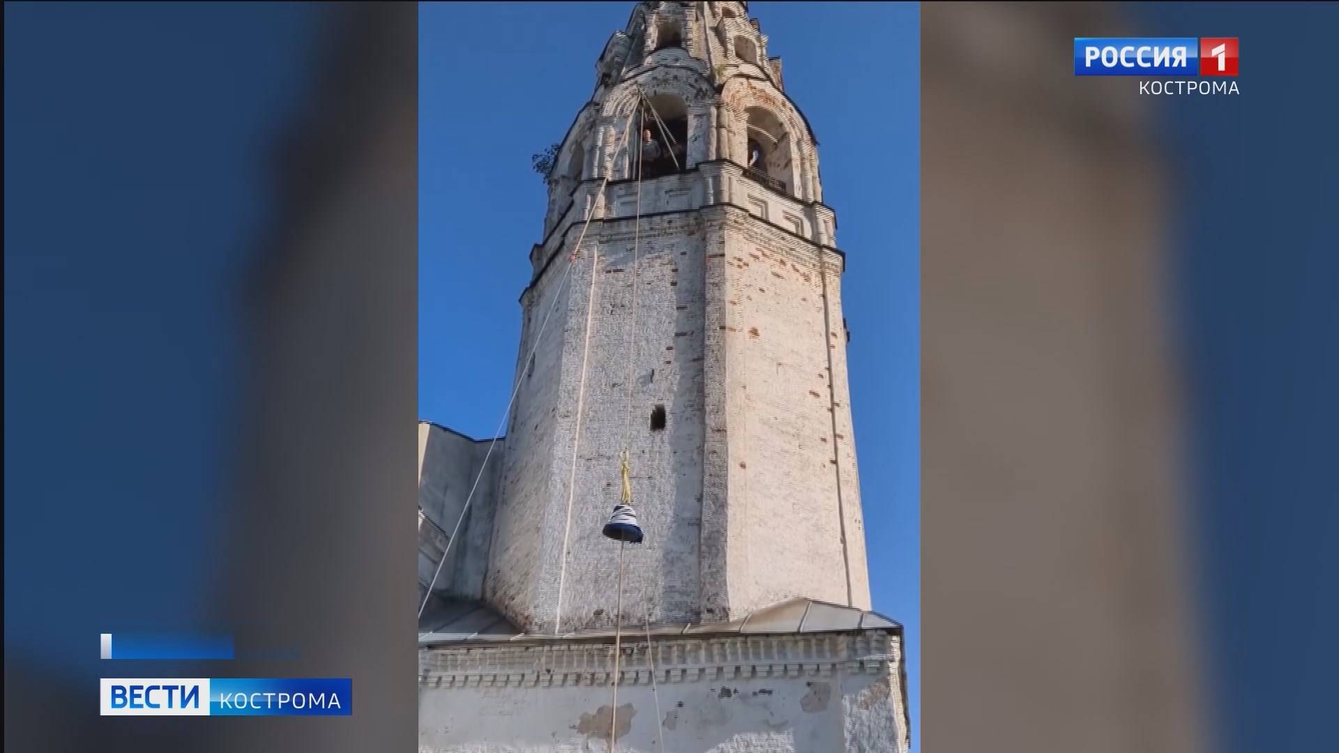 На колокольню храма Воскресения Христова в Сусанине подняли 160-тикилограммовый колокол