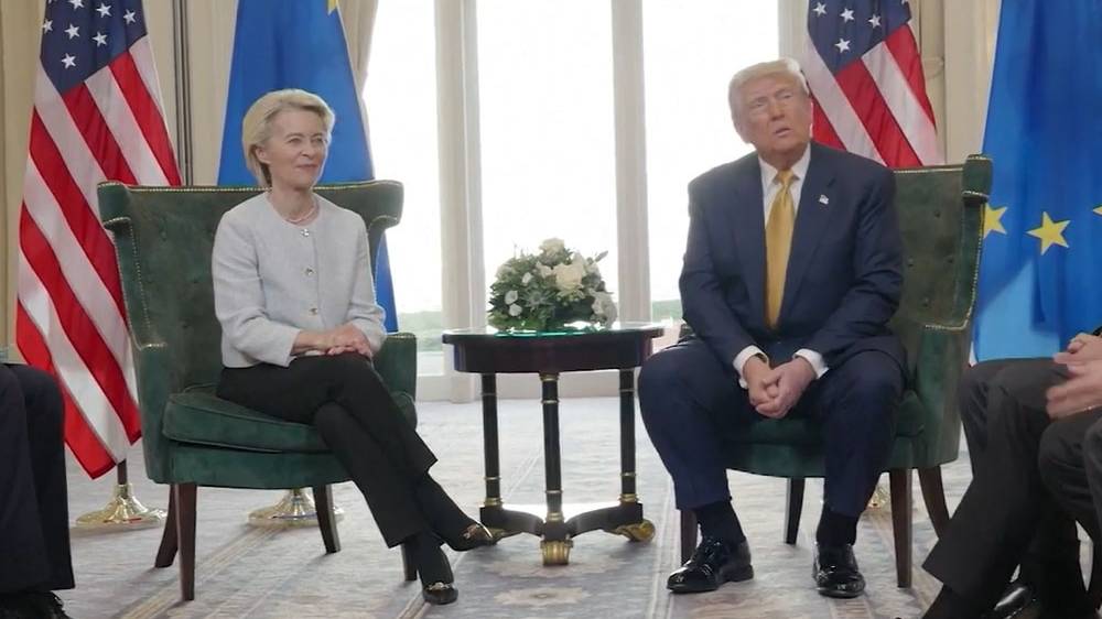 Трамп и фон дер Ляйен заключили унижающую Европу сделку: https://rg.ru/2025/07/28/tramp-i-fon-der-liajen-zakliuchili-unizhaiushchuiu-evropu-sdelku.html