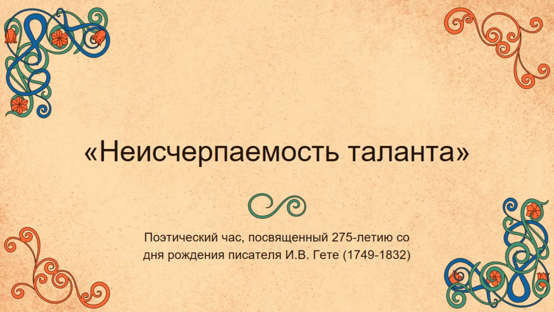 Поэтический час, посвященный 275-летию со дня рождения писателя И.В. Гёте
