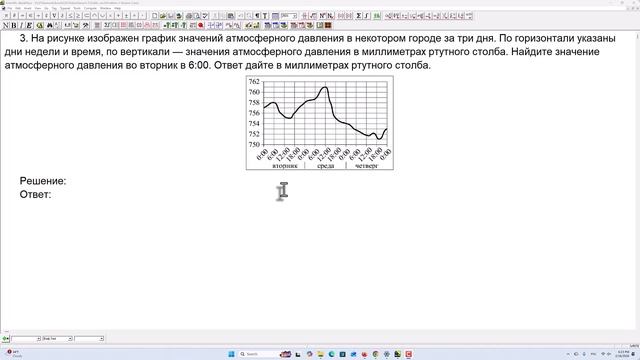 На рисунке изображен график значений атмосферного давления в некотором городе за три дня. По горизонтали указаны дни недели и время, по вертикали --- значения атмосферного давления в миллиметрах ртутного столба. Найдите значение атмосферного давления во вторник в 6:00. Ответ дайте в миллиметрах ртутного столба. #репетиторматематика #егэ #репетиторпоматематике #егэматематика #репетитор