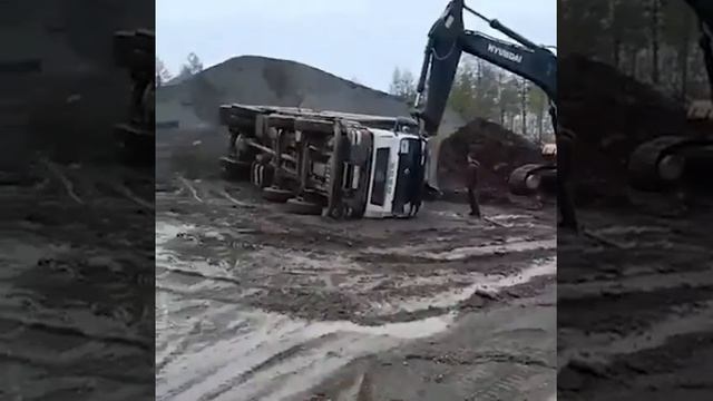 Во время разгрузки самосвал перевернулся. Однако добросовестный экскаваторщик быстро пришел на помощь и аккуратно поставил его обратно на колеса. Судя по всему, это не первый такой случай — он уже не раз показывал свою готовность помогать в подобных ситуациях и проявлять настоящее мастерство и внимательность.