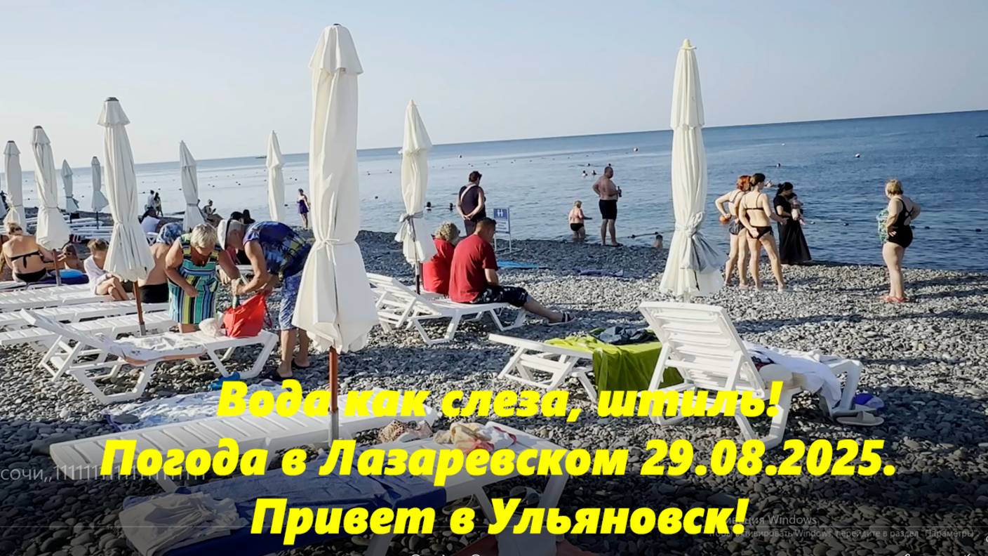 Вода как слеза, штиль! Погода в Лазаревском, 29.08.2025. Привет в Ульяновск!