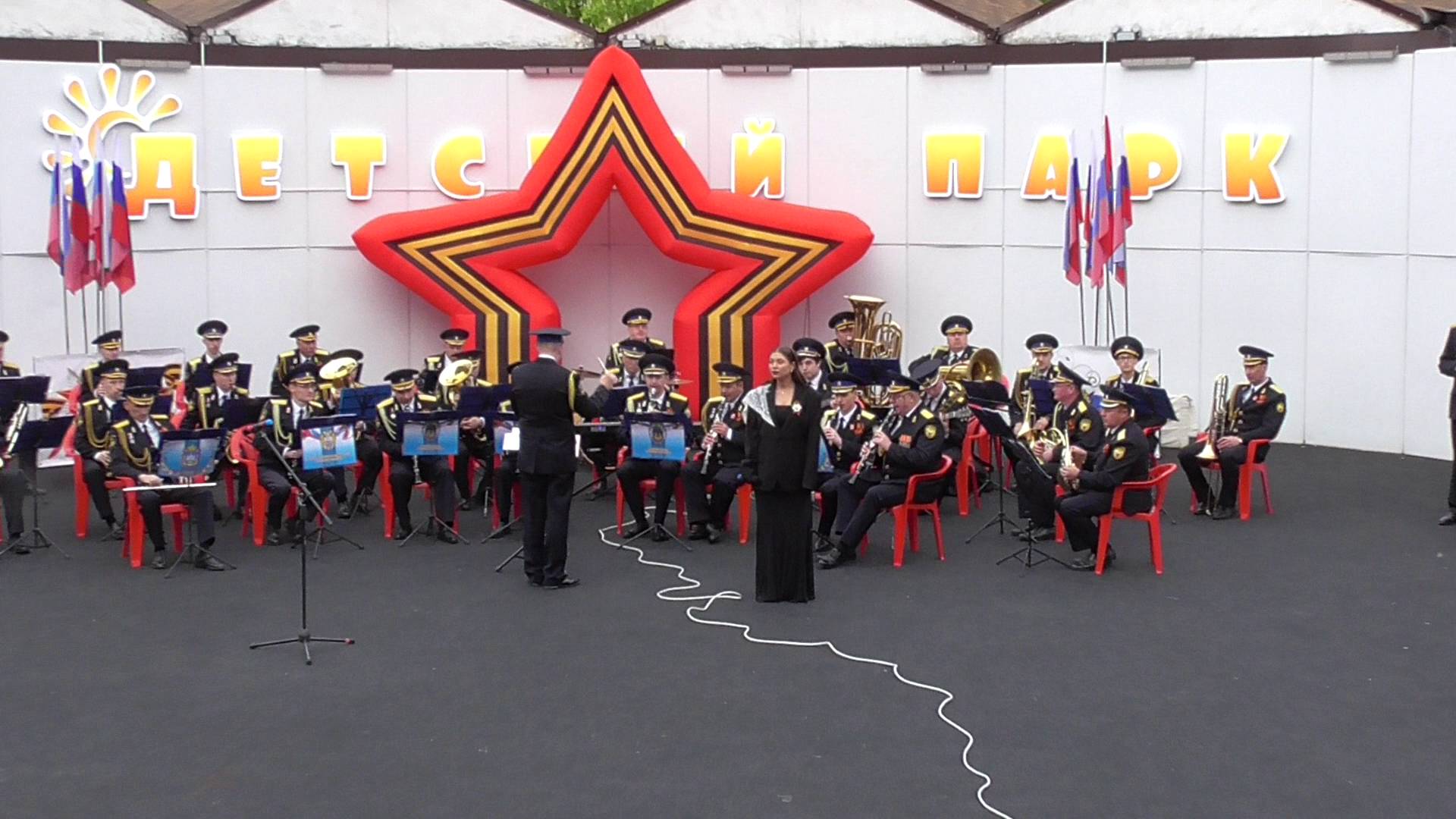 Выступление духового оркестра, певица поёт песню: Кукушка