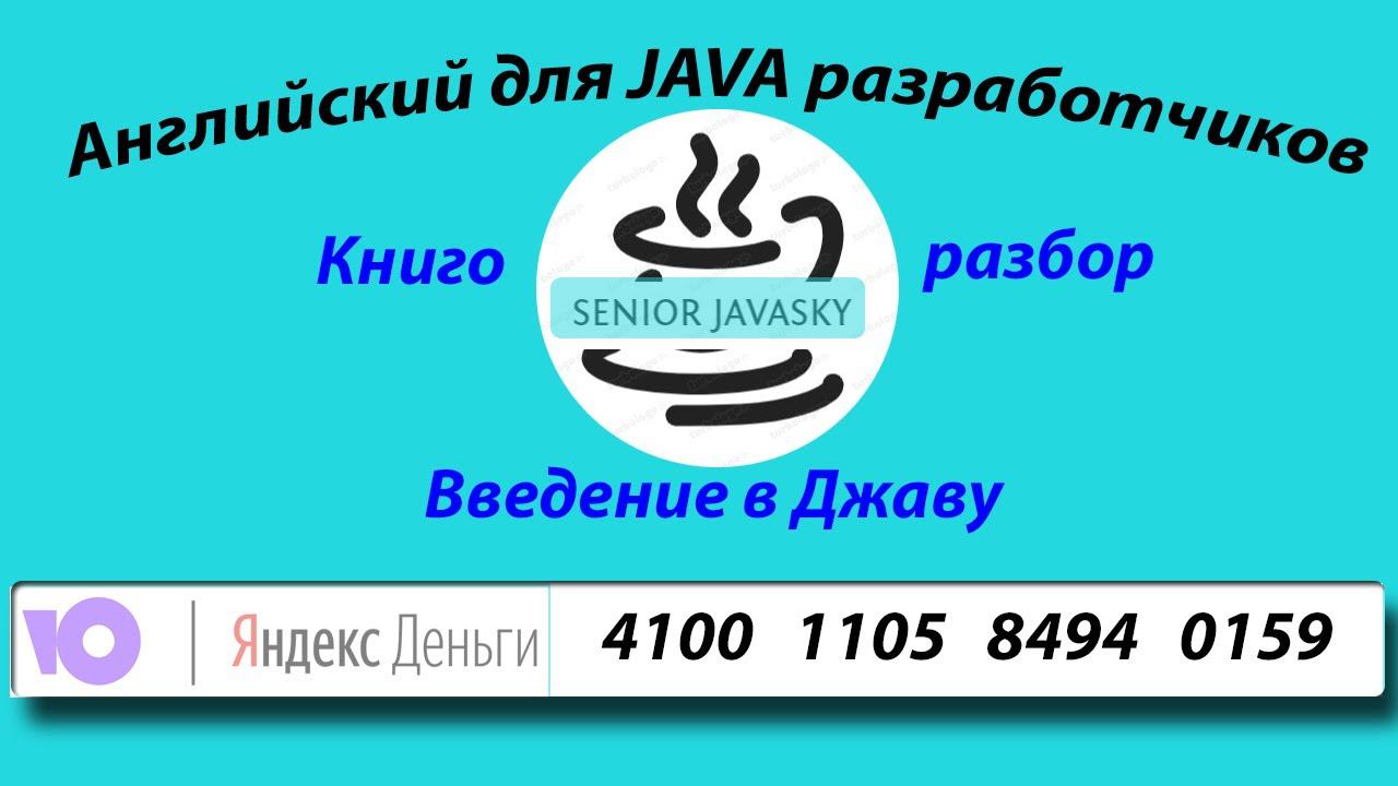 Надеюсь вы возьмете пользу с моего разбора книги "Java core", и не только разберетесь в нюансах Java разработки, но и подтянете свой английский, чтобы в будущем свободно работать на иностранную компанию и получать ЗП в долларах))) Задонатить автору: Карта Сбер: 5469 6000 2144 3601 (Аслан) ЯндексДеньги(YouMoney):4100110584940159 Спасибо :)
