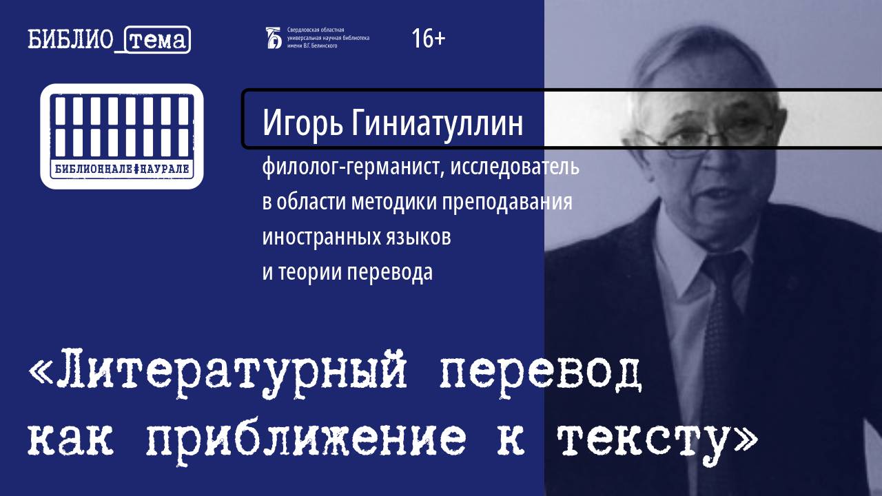 «Литературный перевод как приближение к тексту» — так называется лекция Игоря Ахмедовича Гиниатуллина, лингвиста, переводчика, учёного, для многих любимого преподавателя и давнего читателя библиотеки Белинского. Цикл лекций из серии «Приближение к тексту» начался два года назад, в 2020 году на канале «Клуб друзей Белинки». Лекция, посвящённая литературному, а в частности поэтическому переводу, состоялась в рамках большого книжного фестиваля «Библионнале 2022» 14 ноября в Немецком читальном зале Белинки. Что такое перевод текста? Каковы возможности перевода? Каковы возможности переводчика? О «приближении к тексту» во времени и культурном пространстве в процессе перевода размышляет на встрече с читателями профессор Игорь Ахмедович Гиниатуллин. Анализируемые тексты переводов: http://book.uraic.ru/files/news/122022/teksty-perevodov.pdf Камера, монтаж: Анастасия Тихонова Свердловская областная универсальная научная библиотека им. Белинского http://book.uraic.ru/ сайт https://vk.com/club6745014 VK