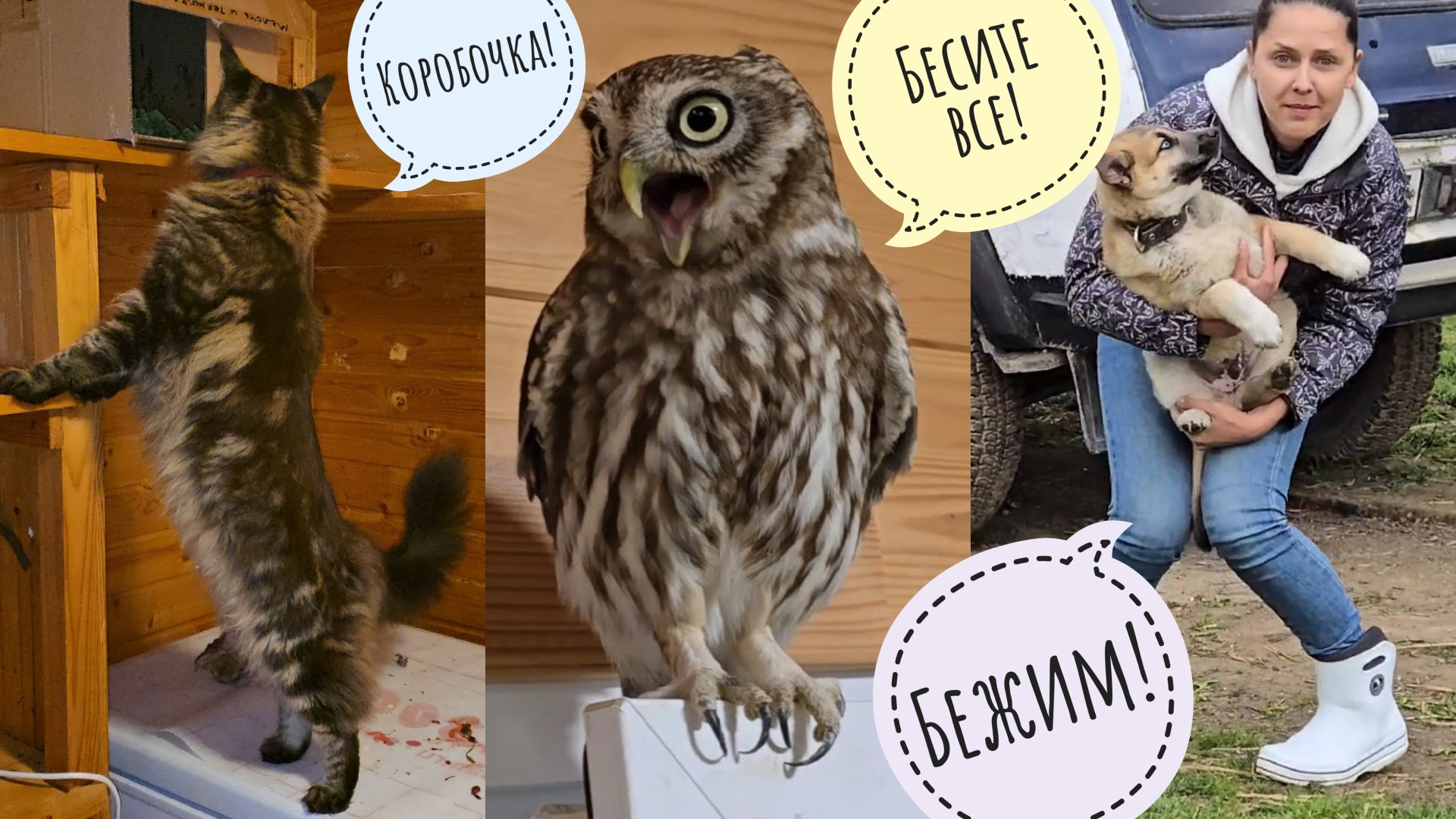 Совы облаяли кошку Морошку, Маша жмякает щеночка, треугольный кот показывает, как играть в рулончик